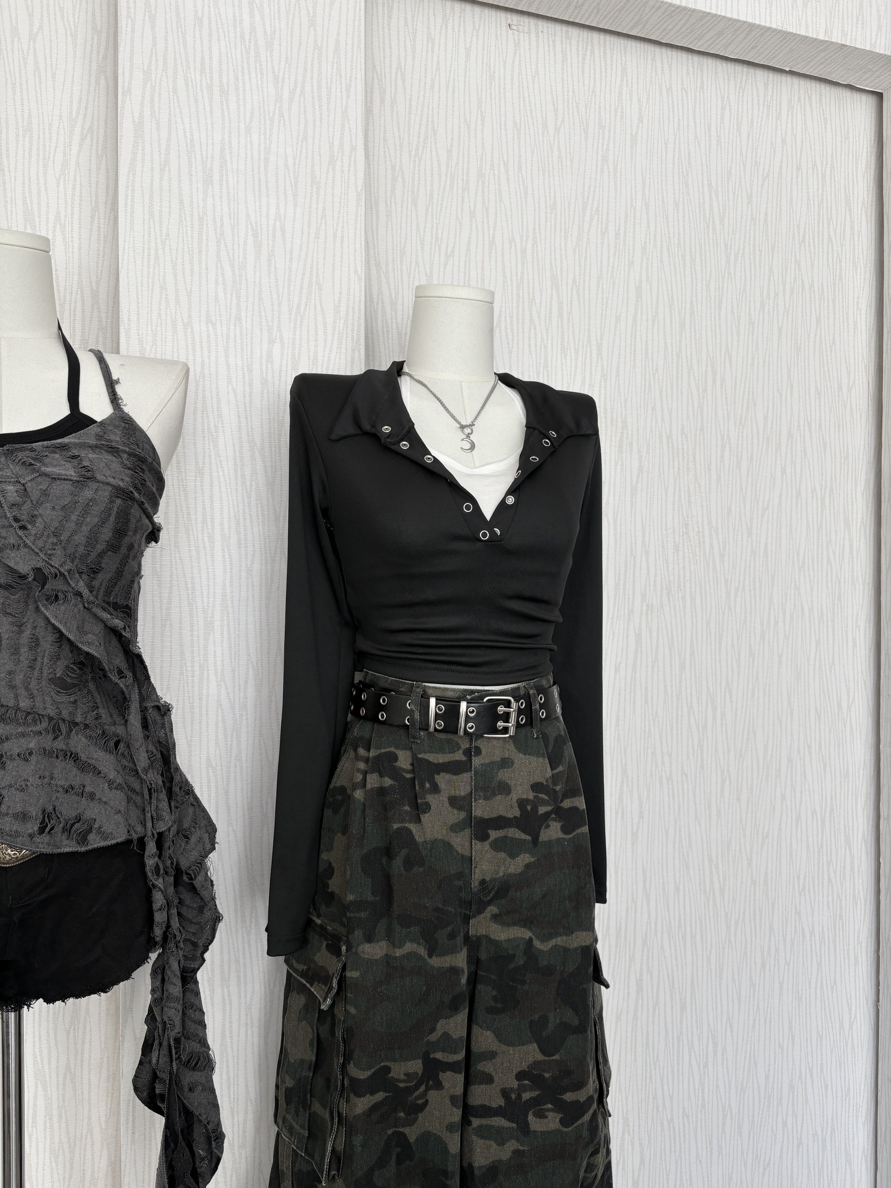 Y2K黑銀雕花釦皮帶