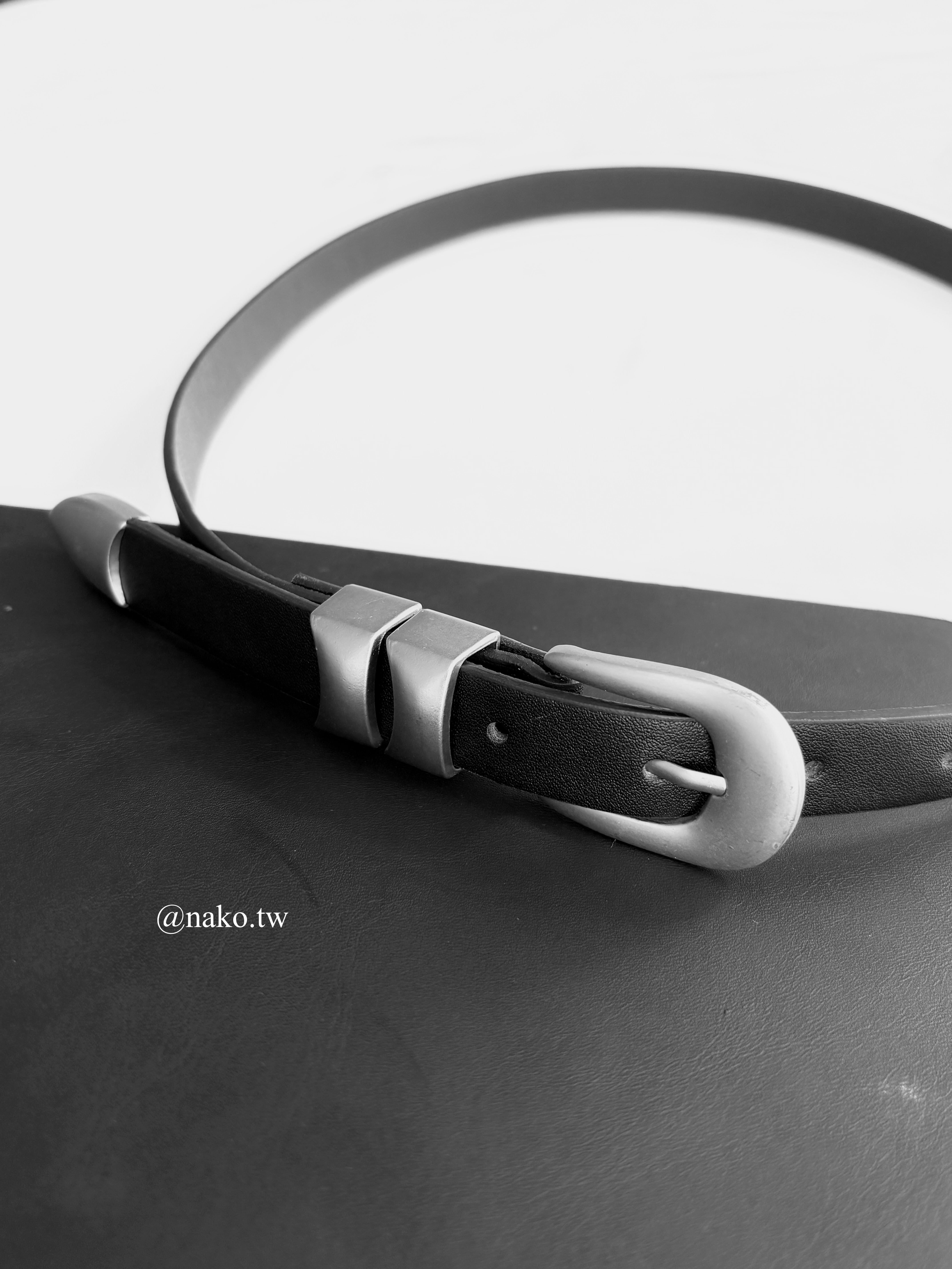 質感古銅銀細款真皮皮帶