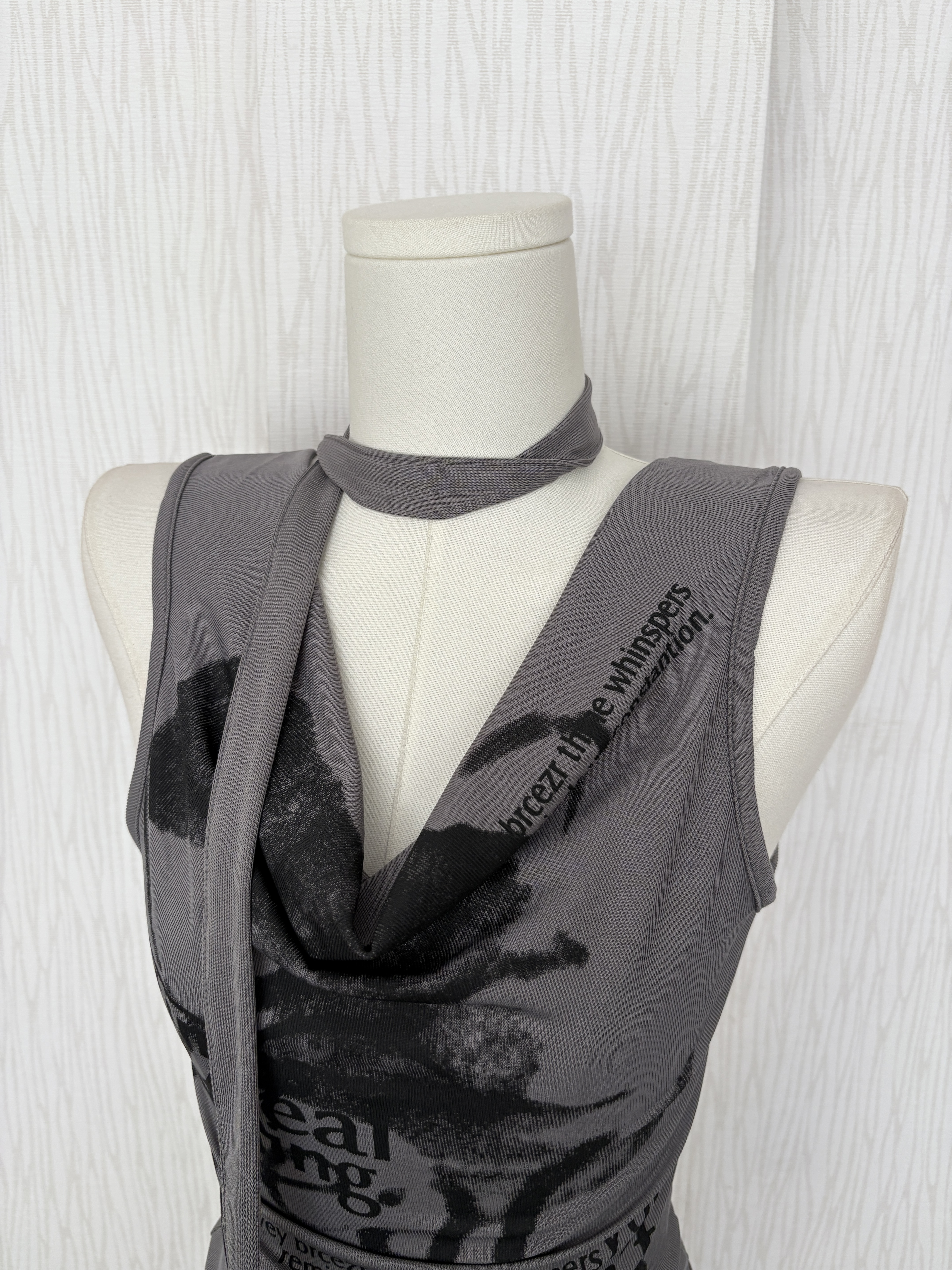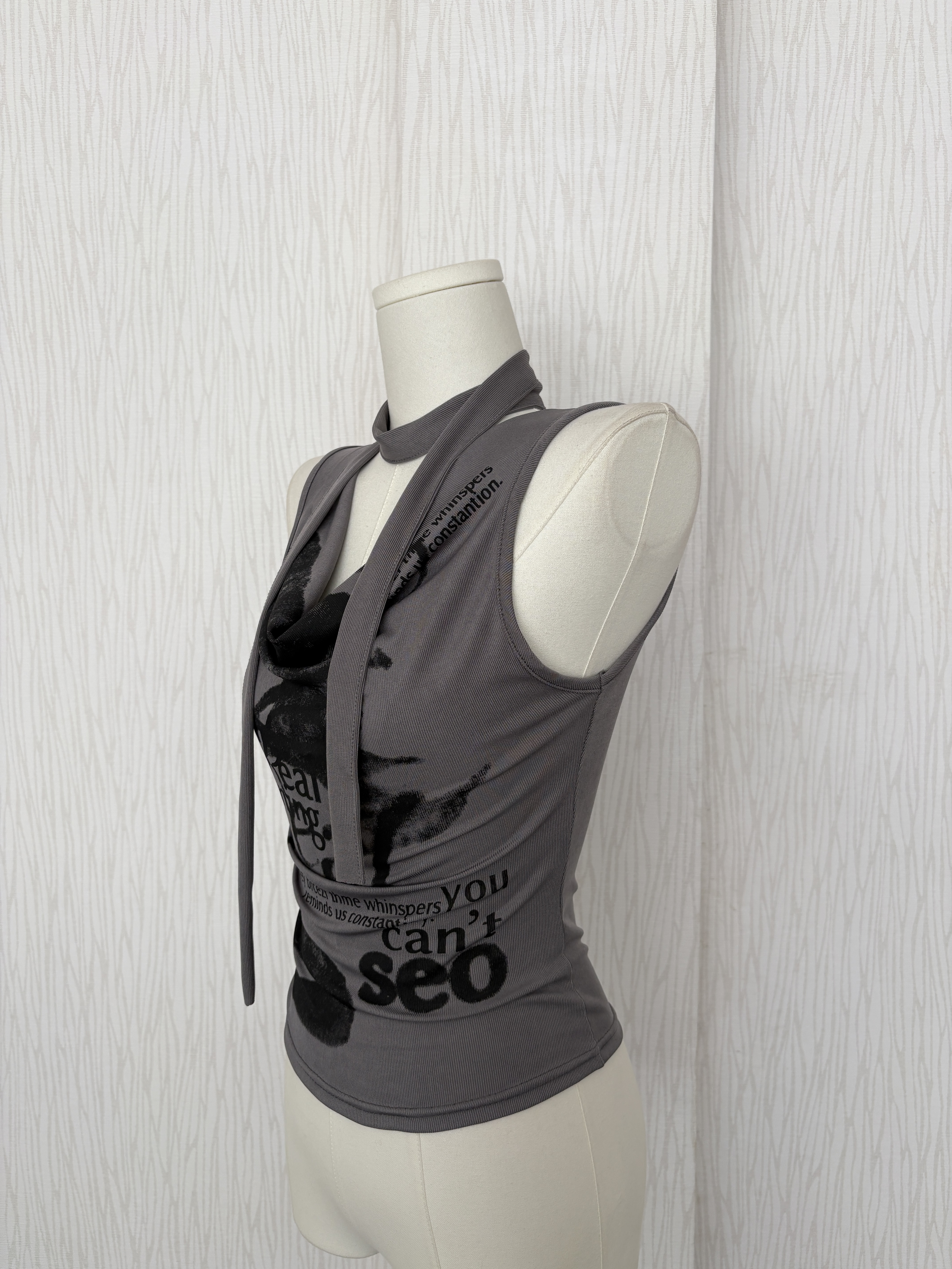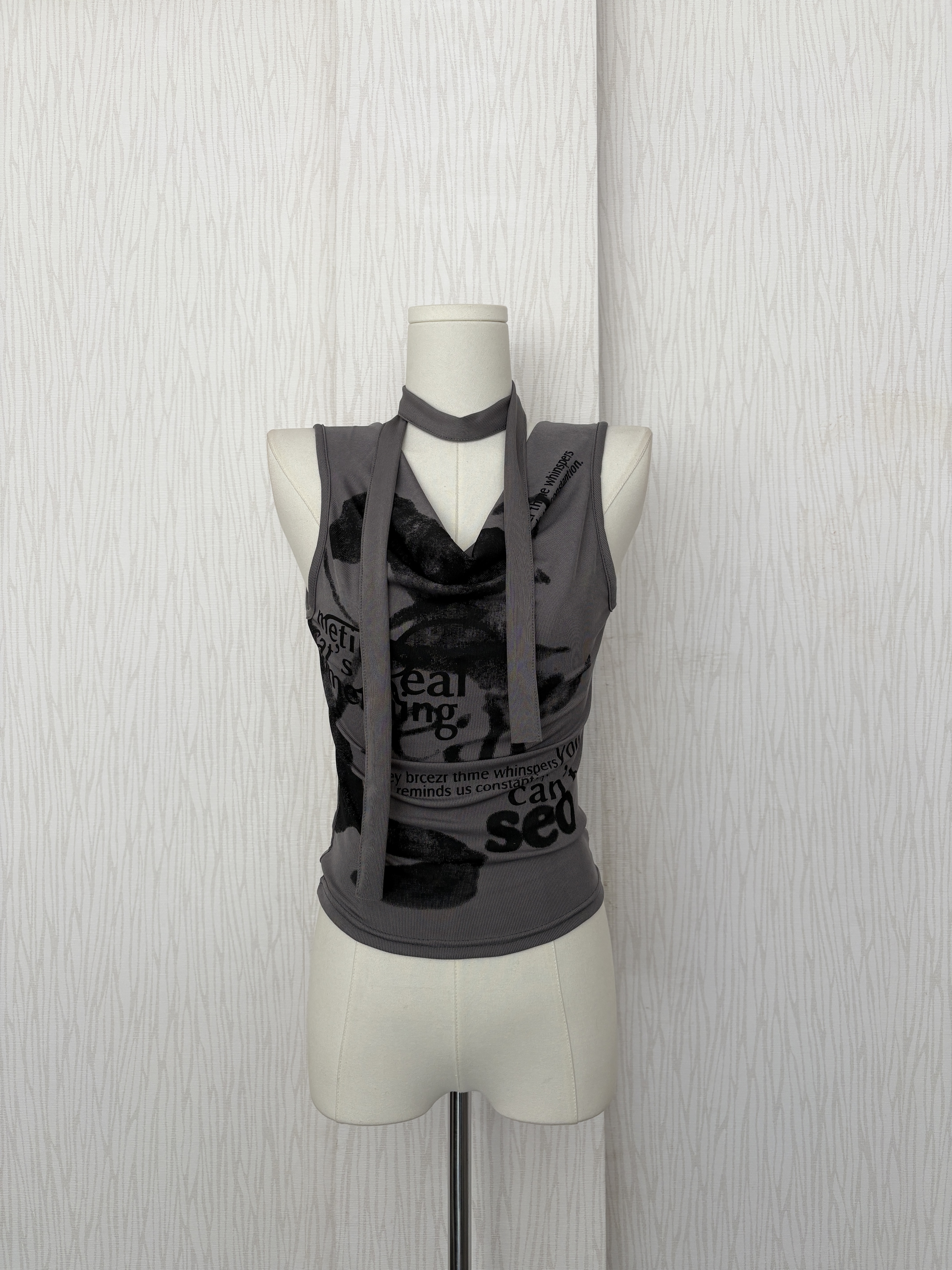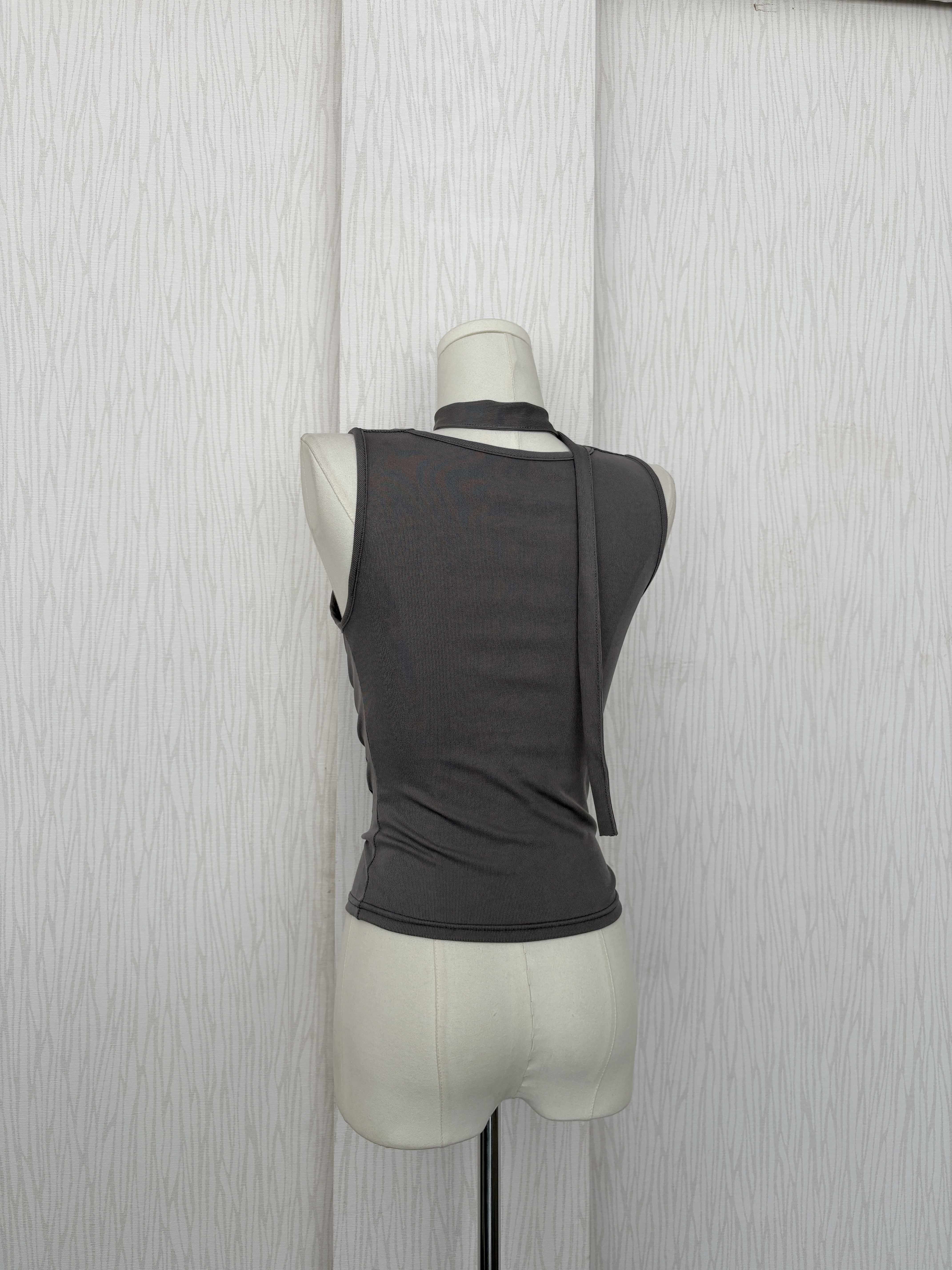 垂墜領畫墨摩卡灰超彈冰涼腰身背心(附脖圍)