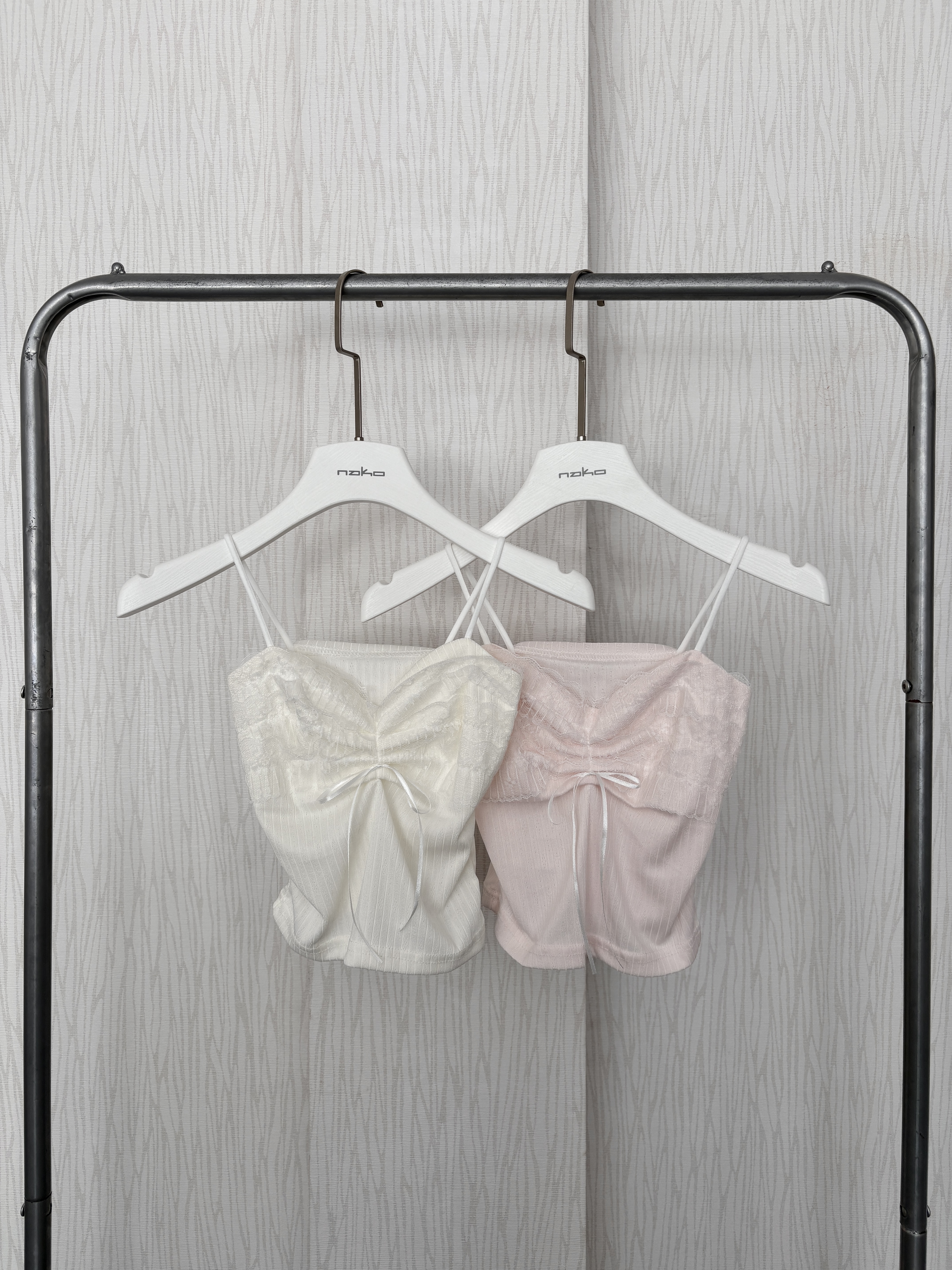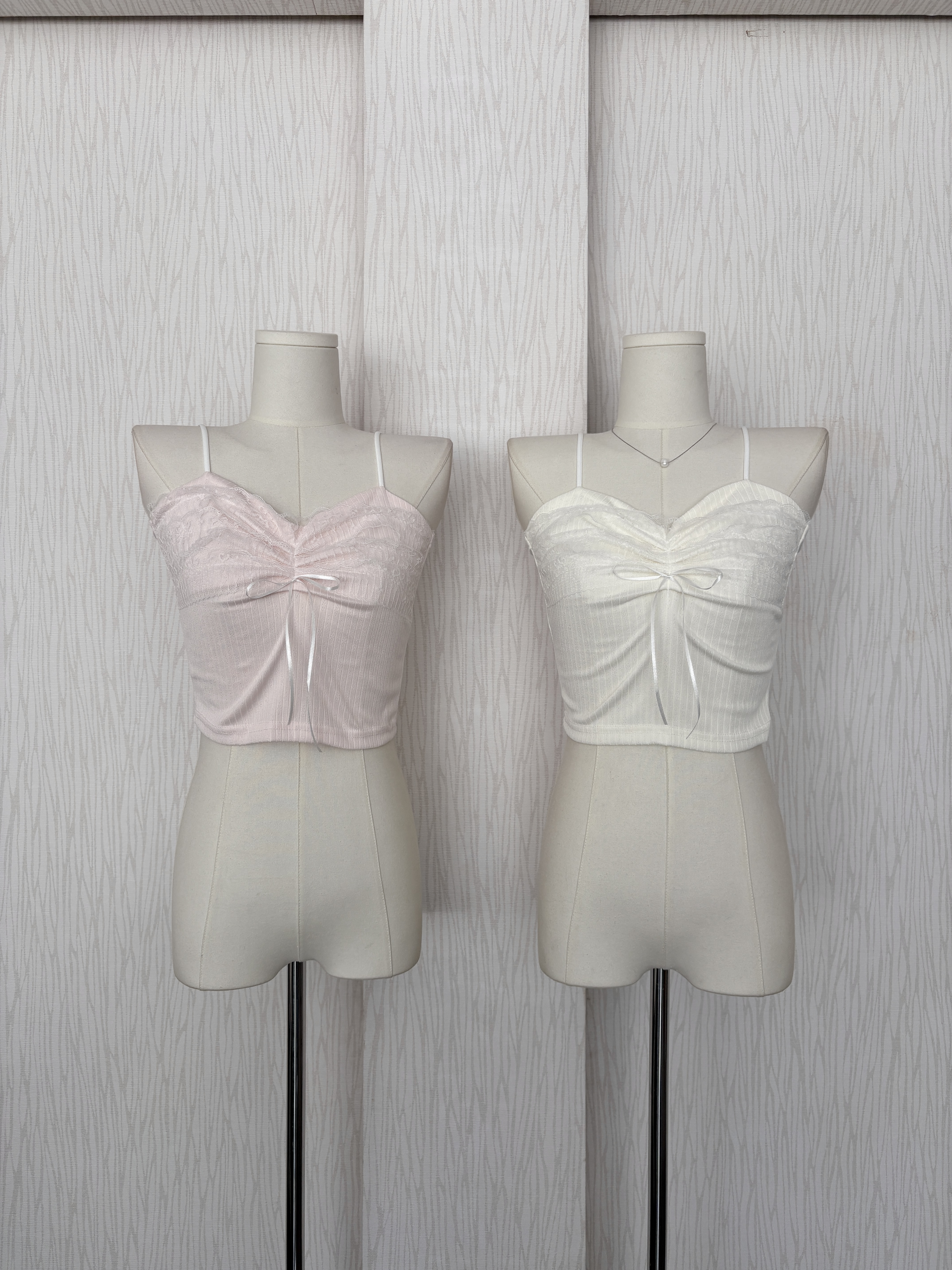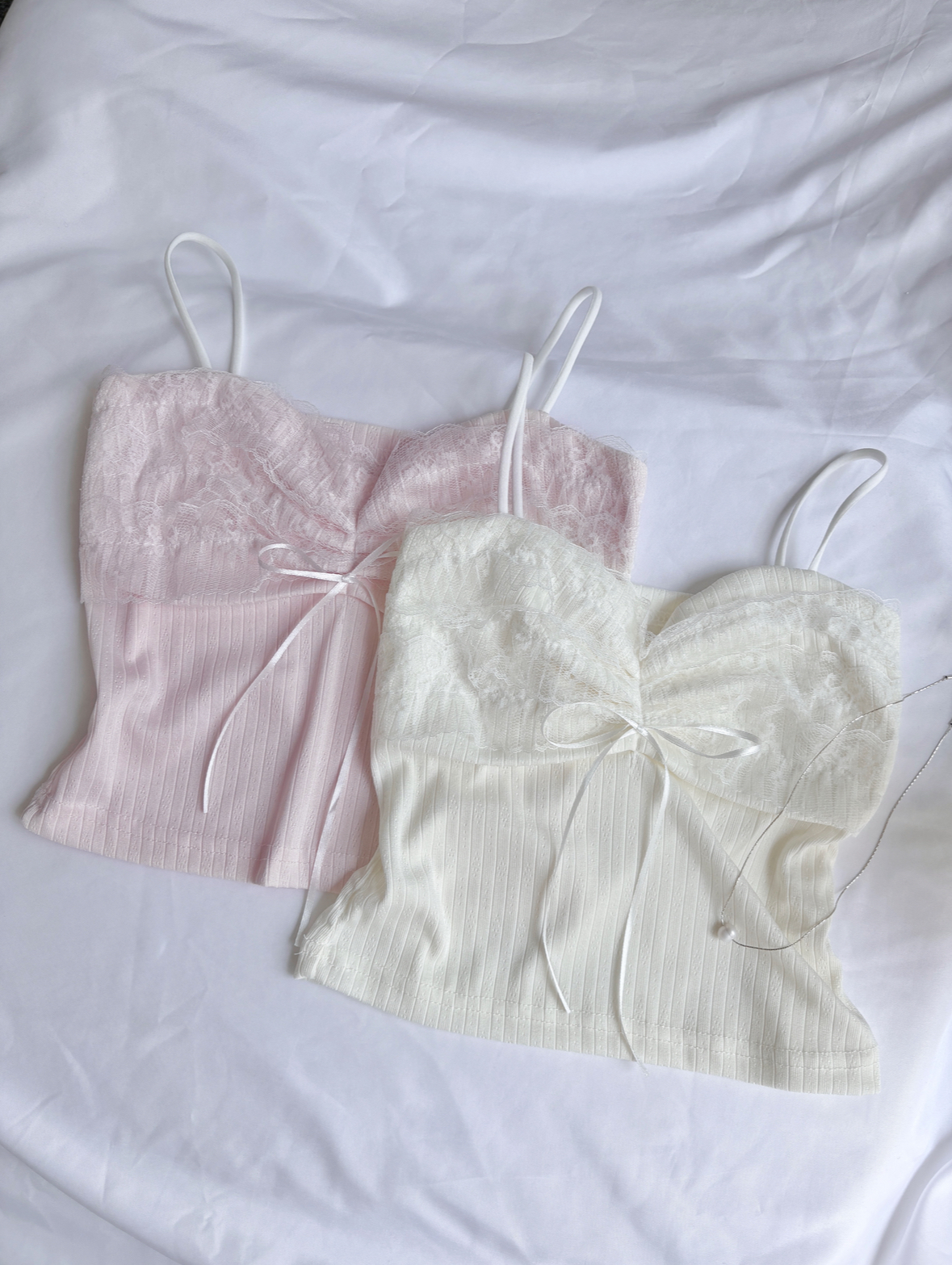 淡奶甜美風蕾絲蝴蝶結細肩背心