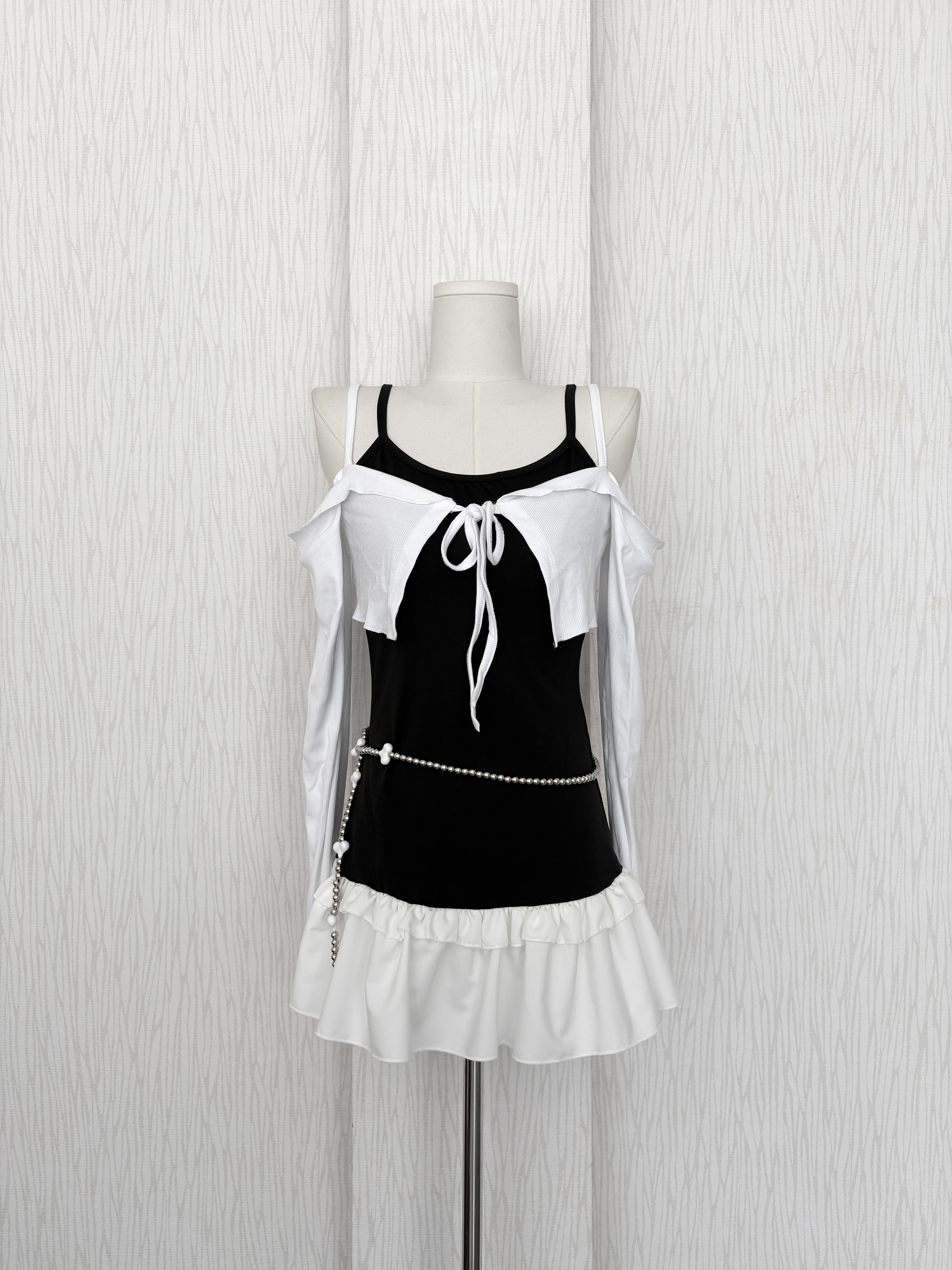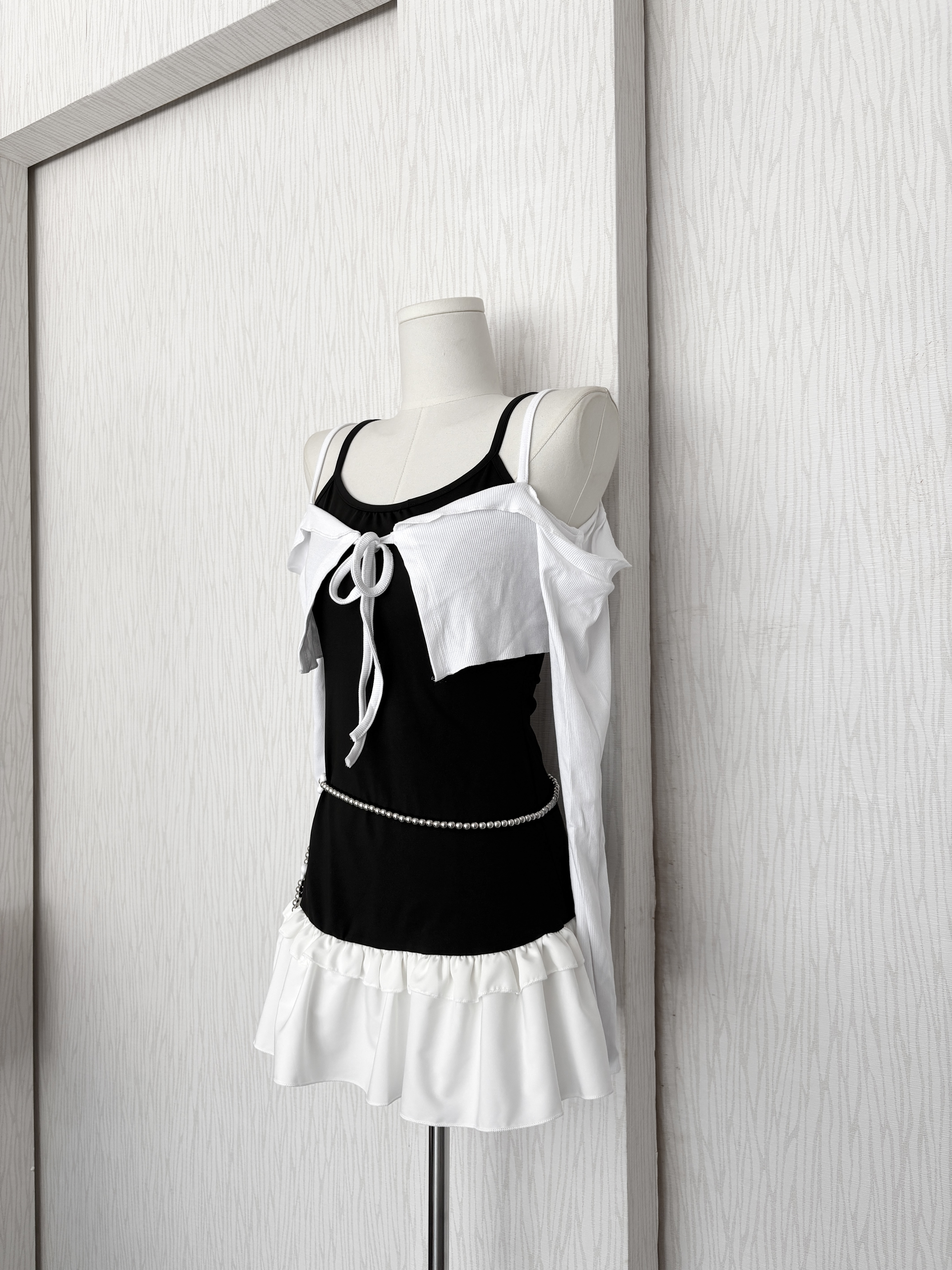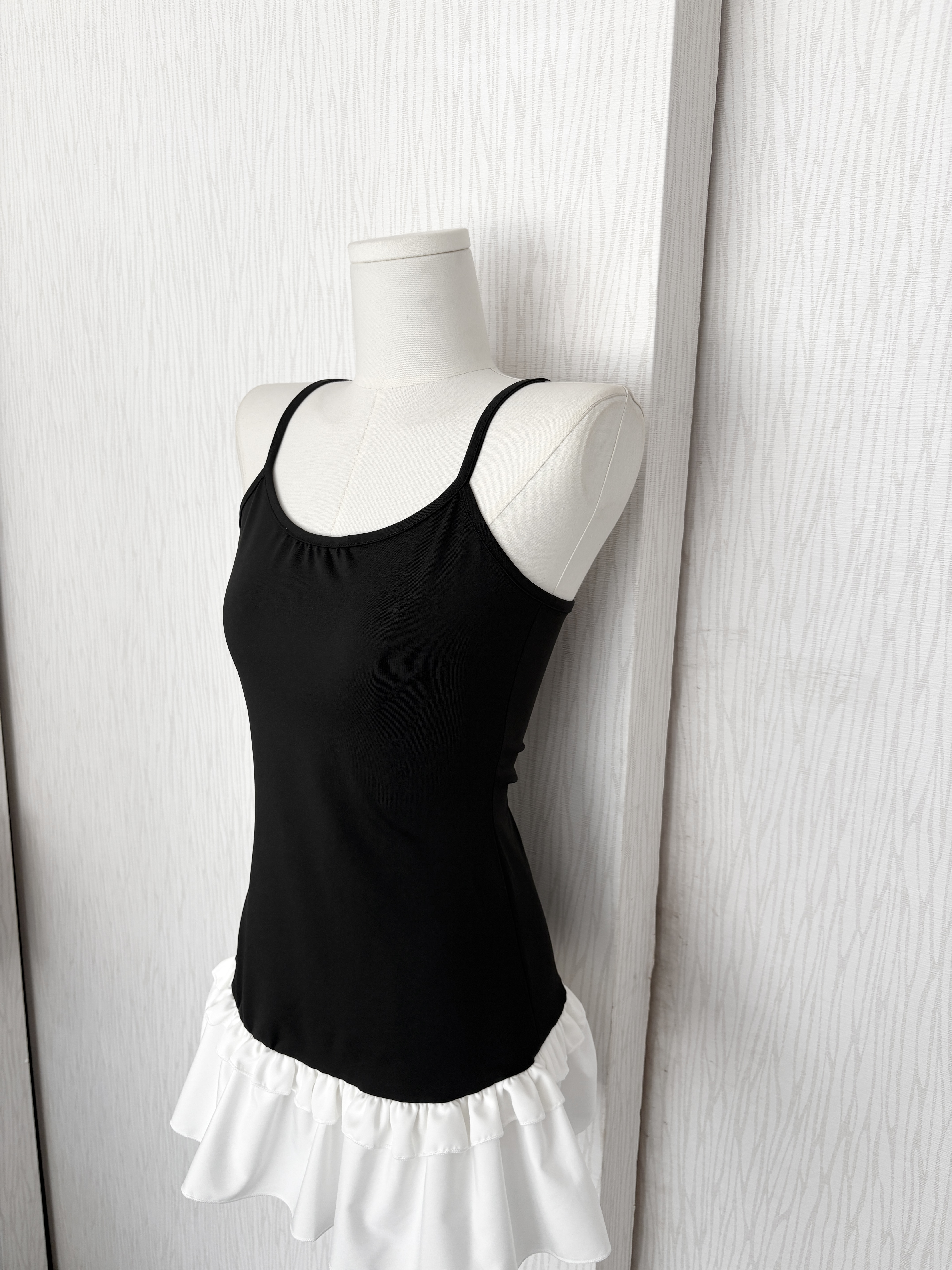 韓系拼接蛋糕下擺細肩打底背心裙