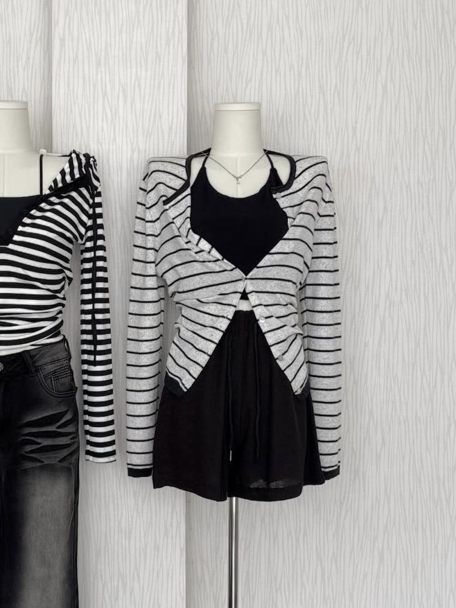 【換季特賣】歐美休閒布標連帽針織拉鍊外套短褲set
