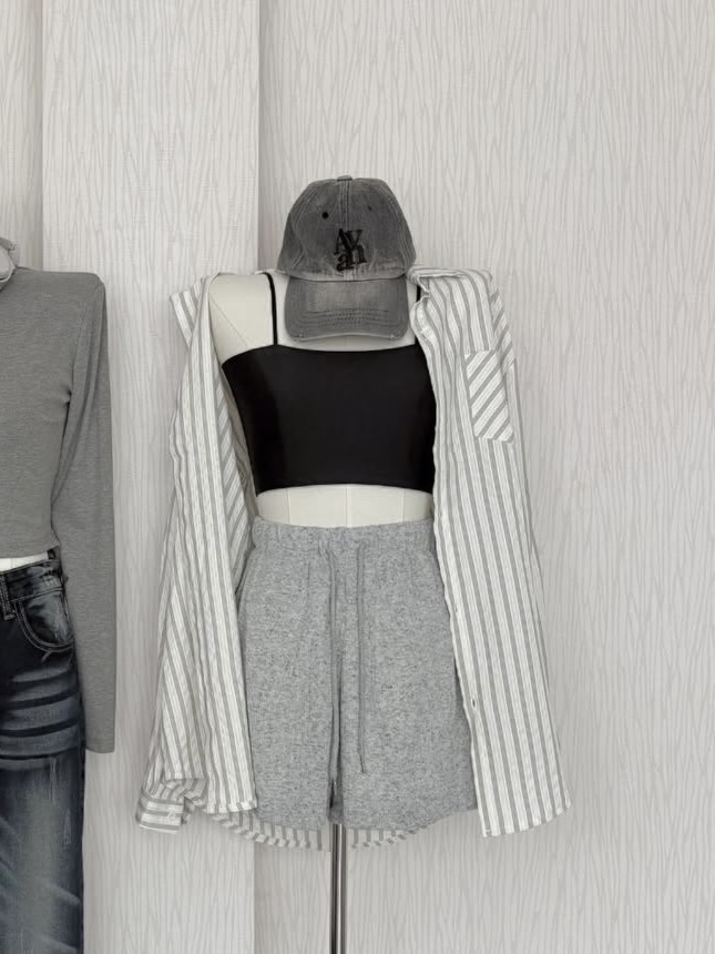 熱賣款混色直紋糯米寬褲(後鬆緊)