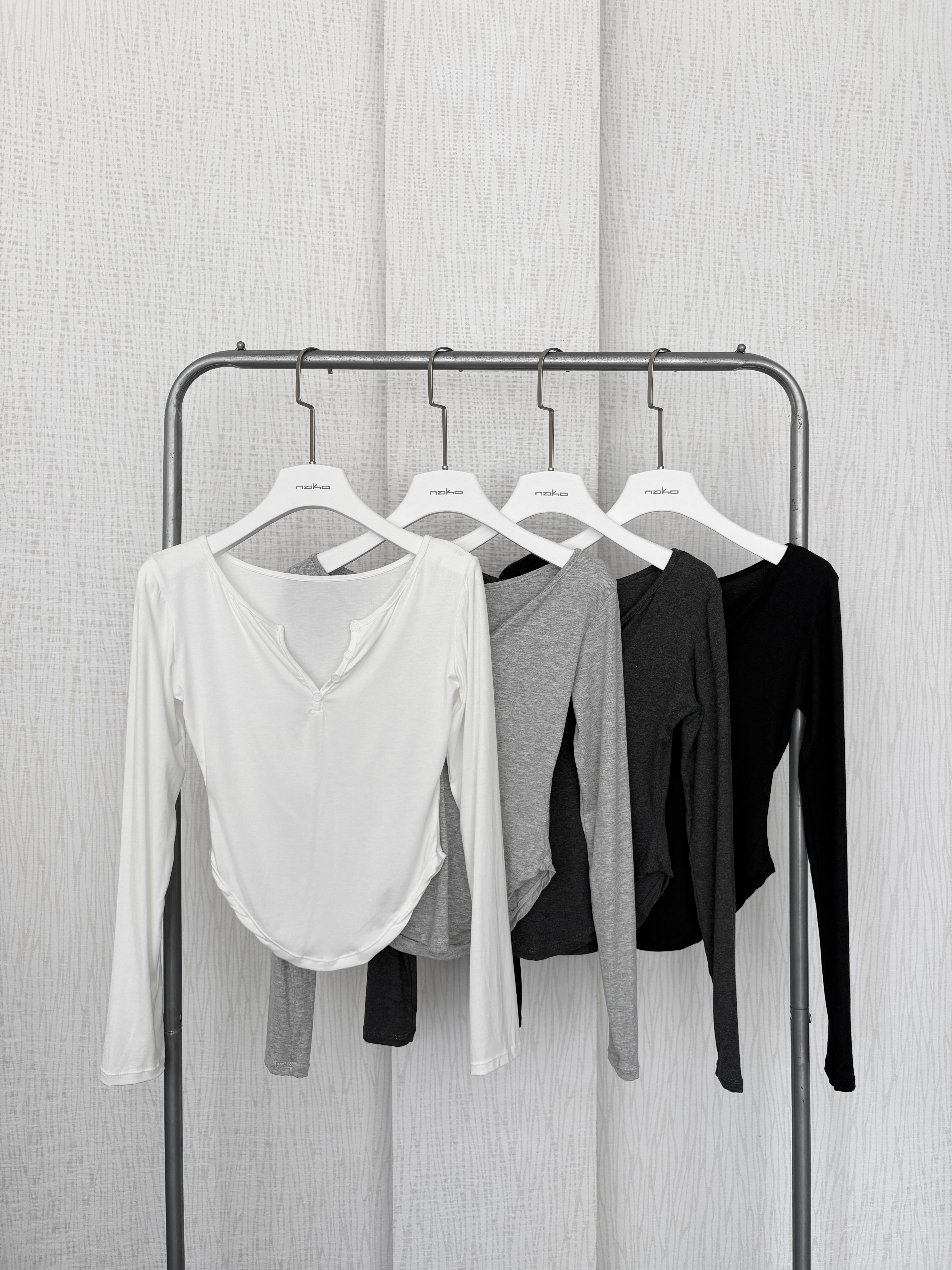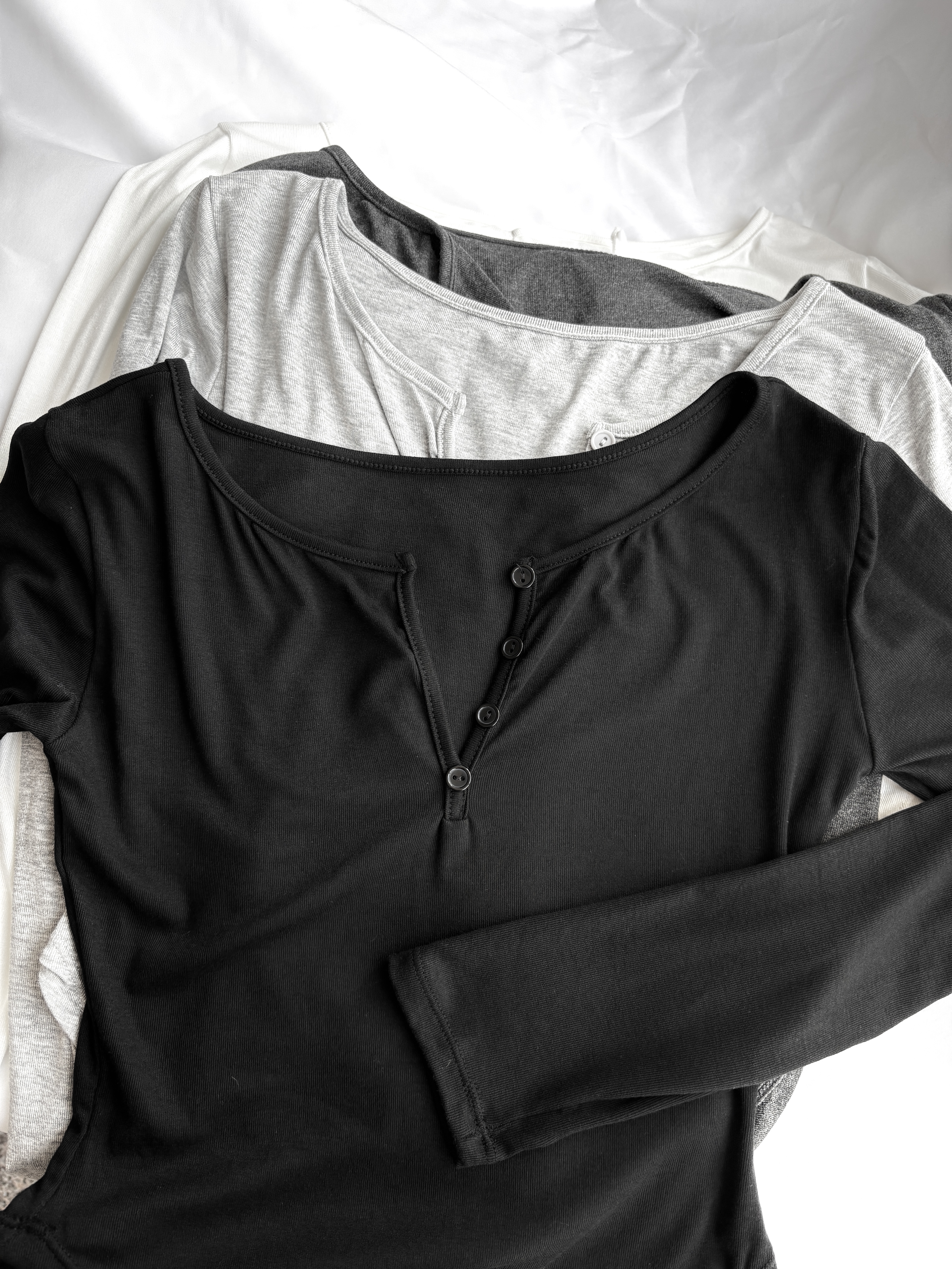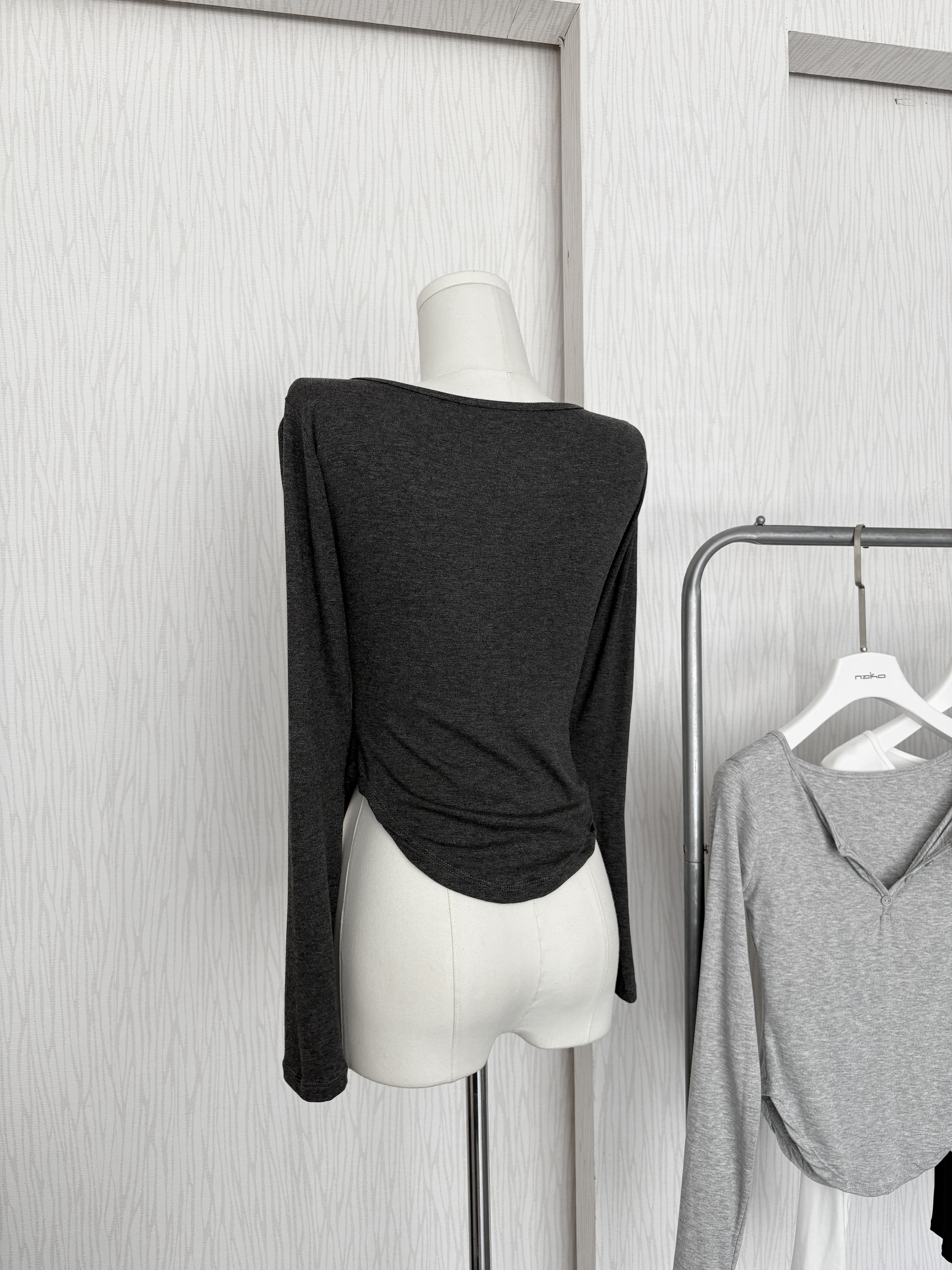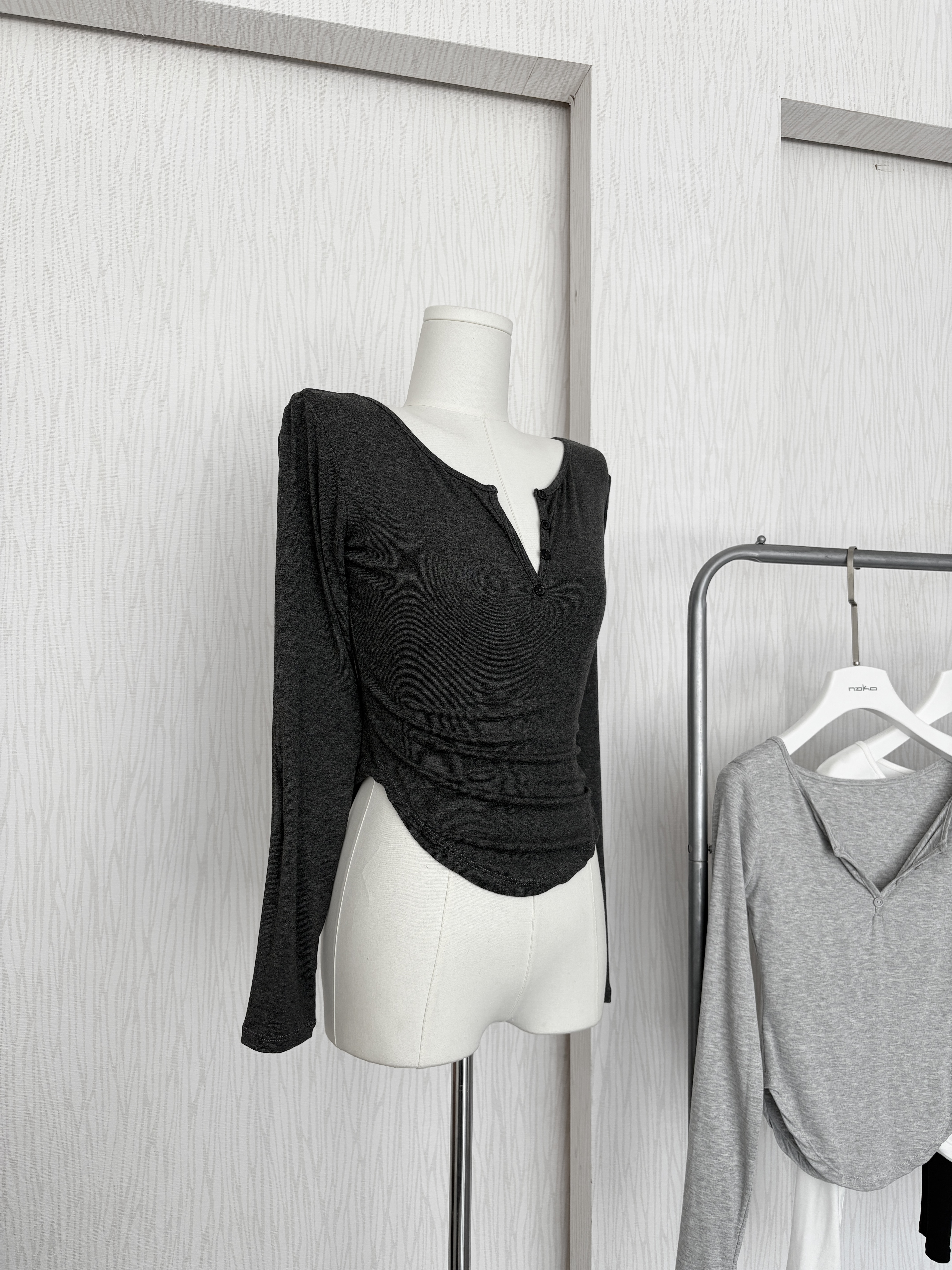 訂製款⊹軟fufu♡假排扣腰身下U長袖上衣