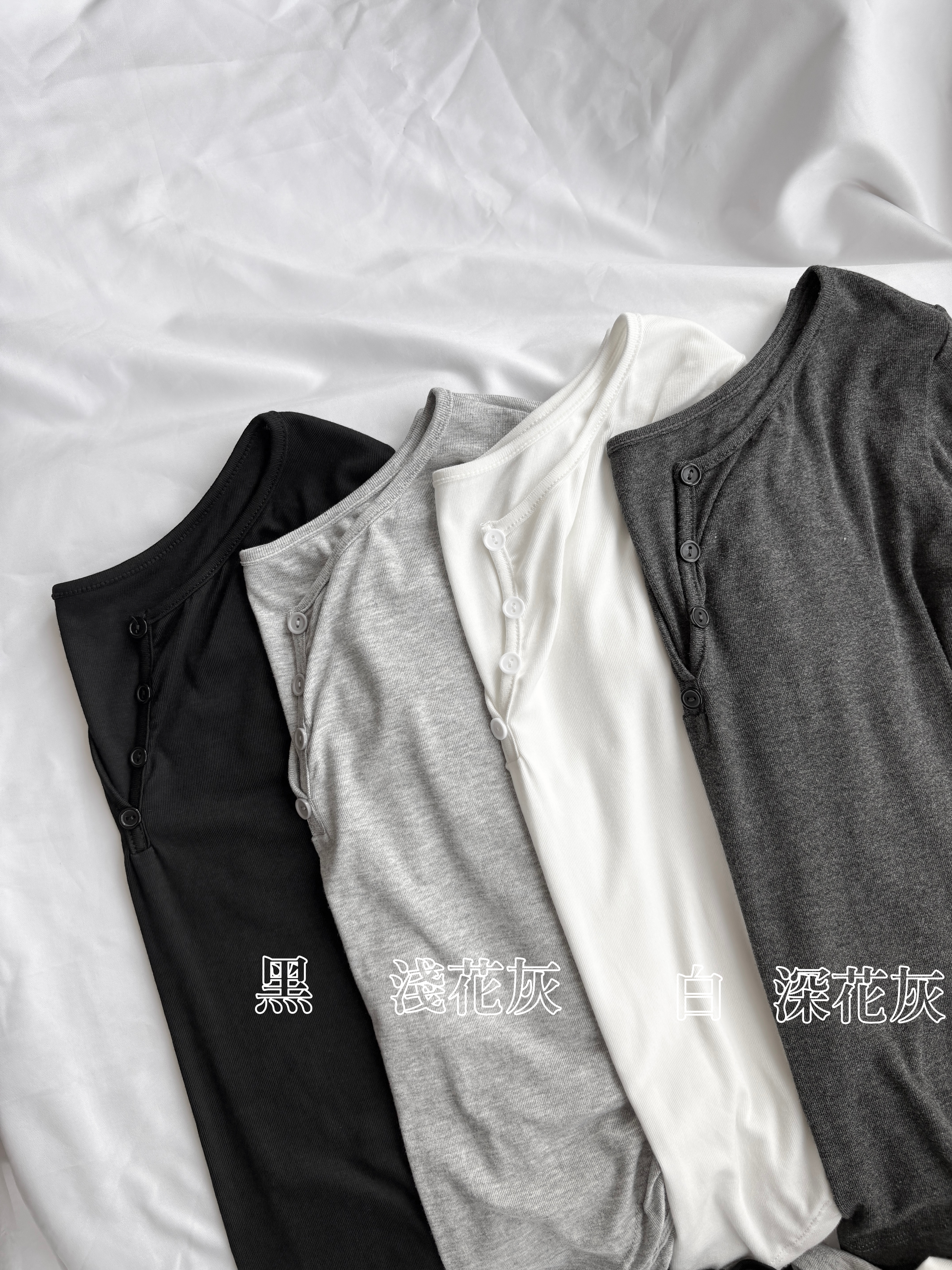 三扣黑邊超短版冰山灰彈性涼感上衣