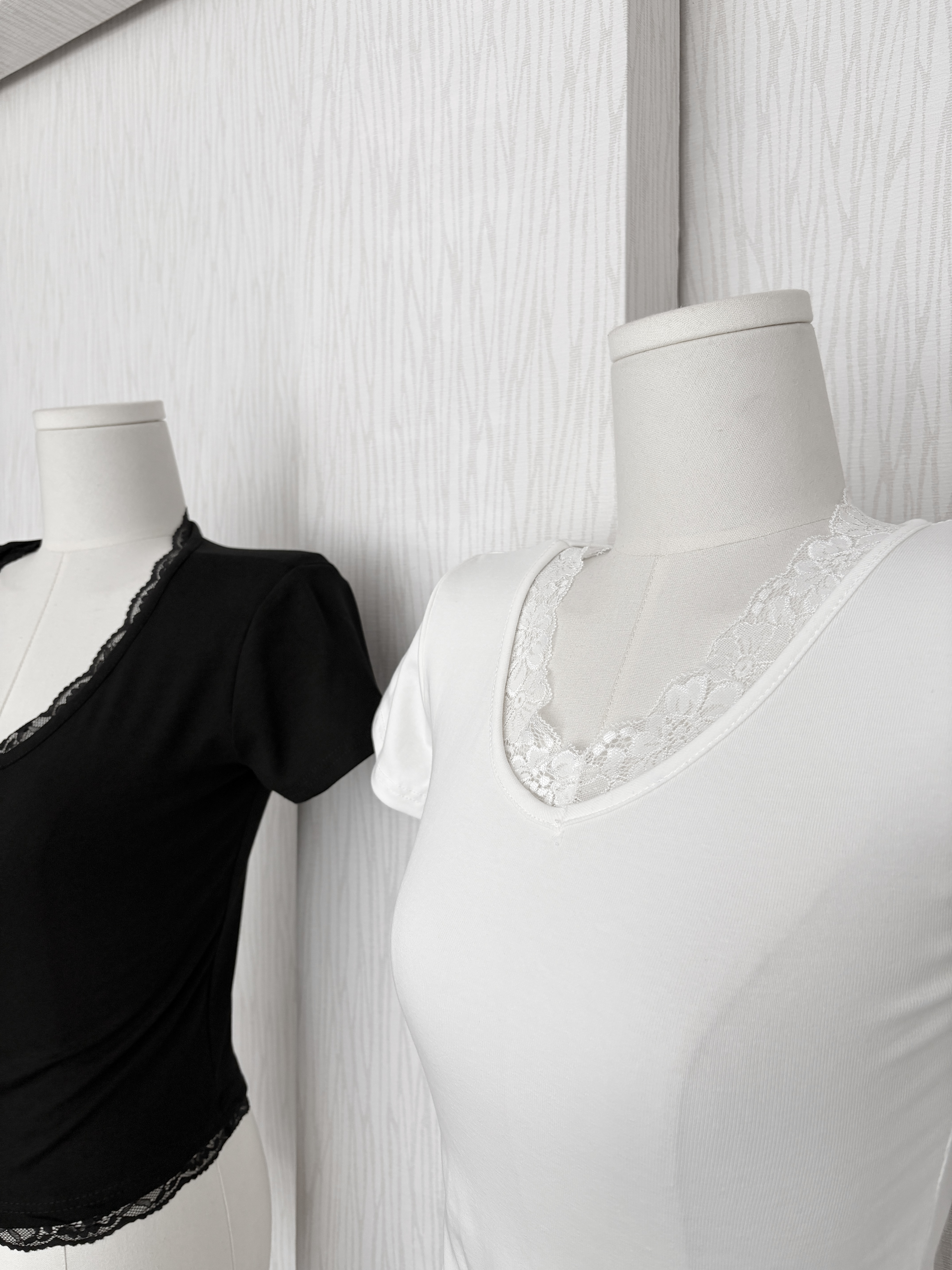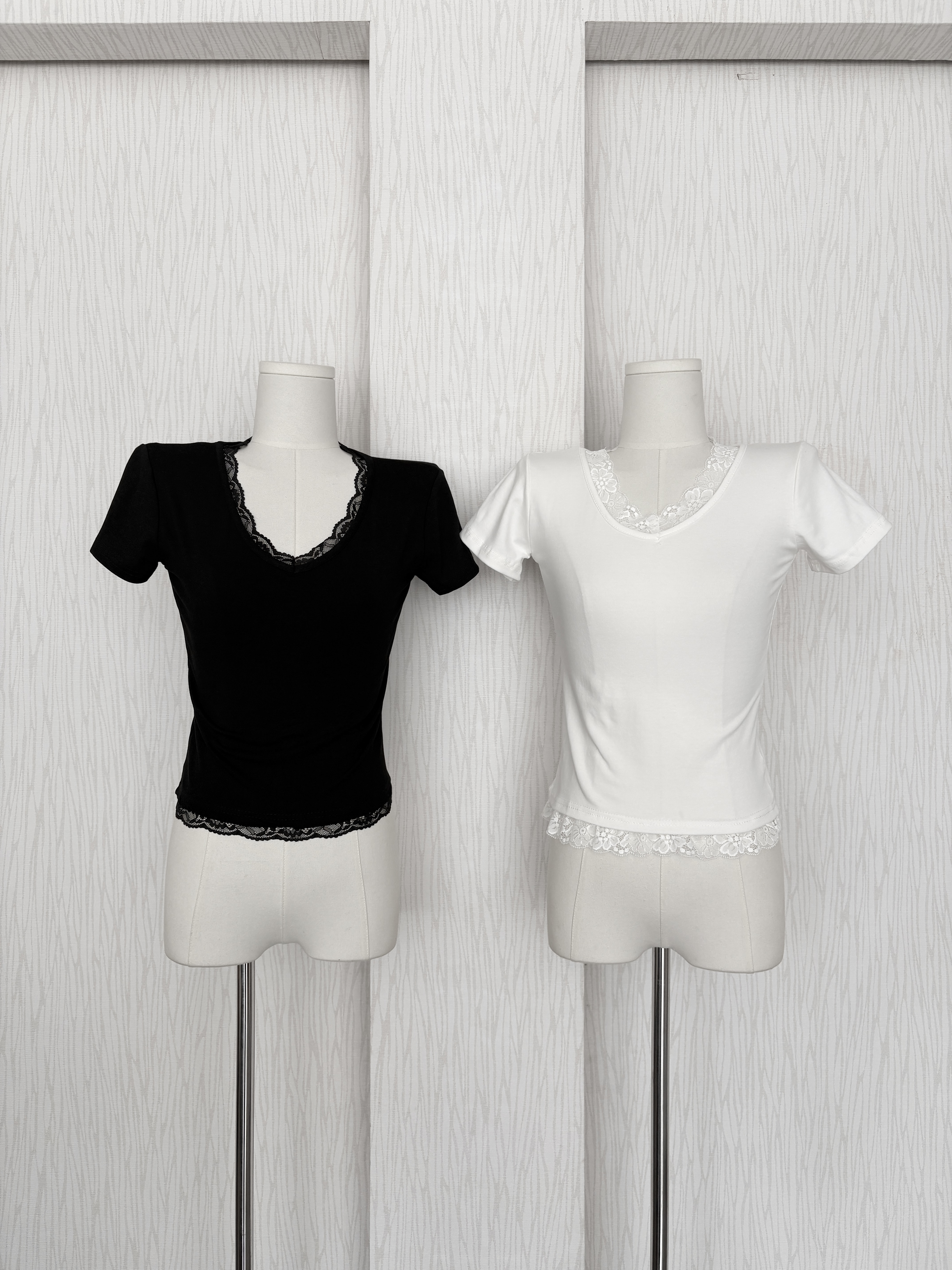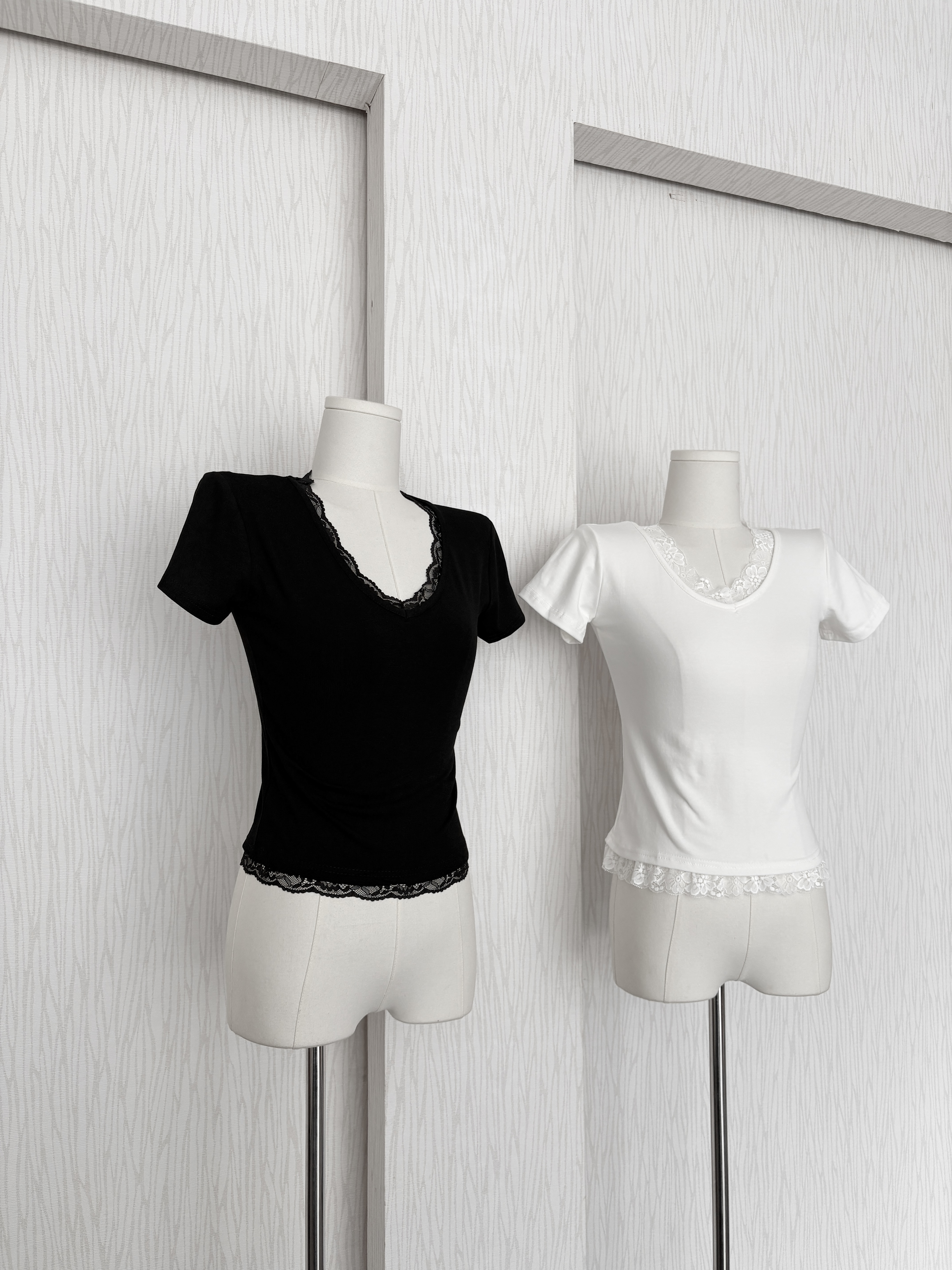 訂製款⊹V領蕾絲花邊素面腰身棉質上衣