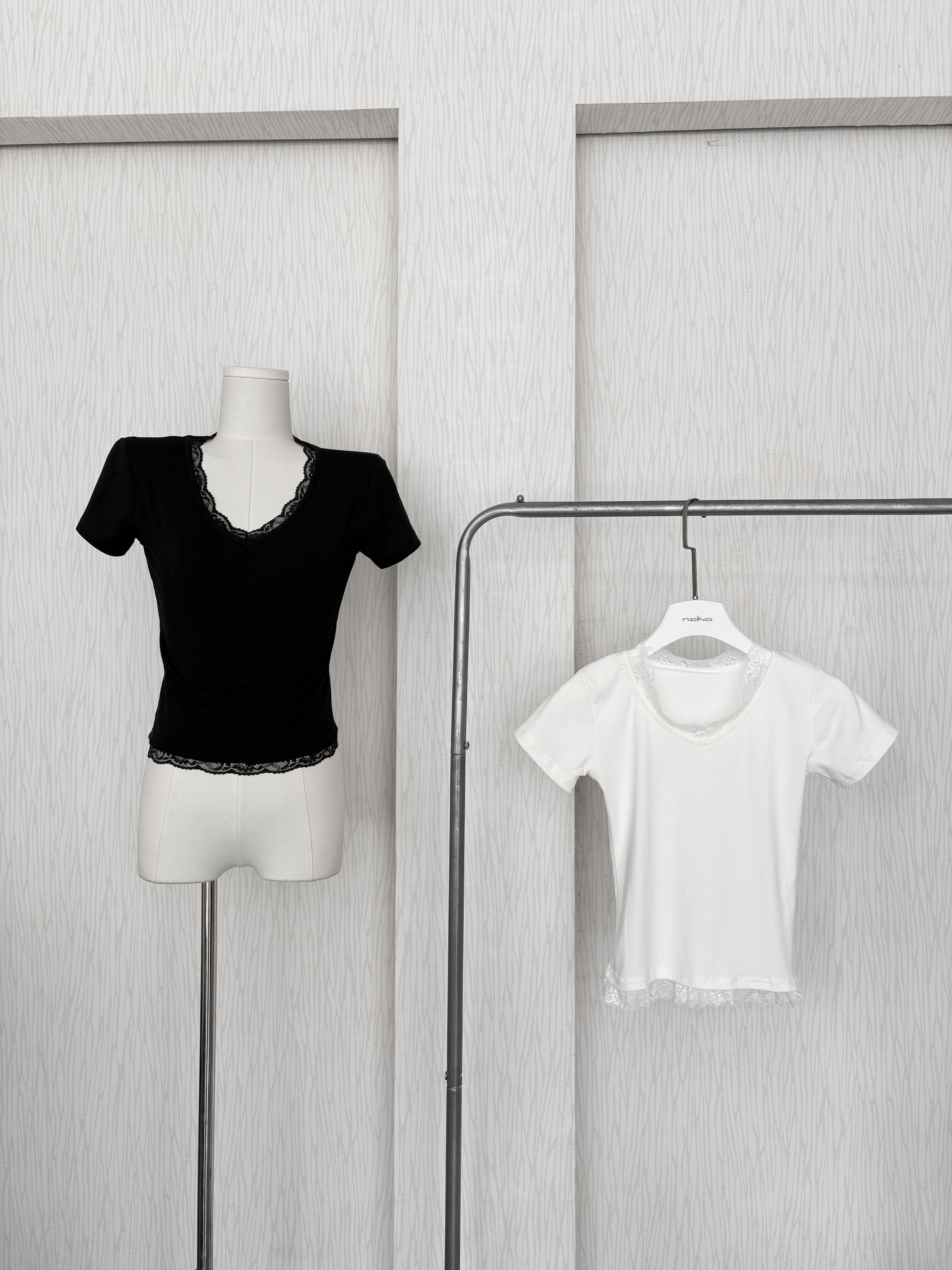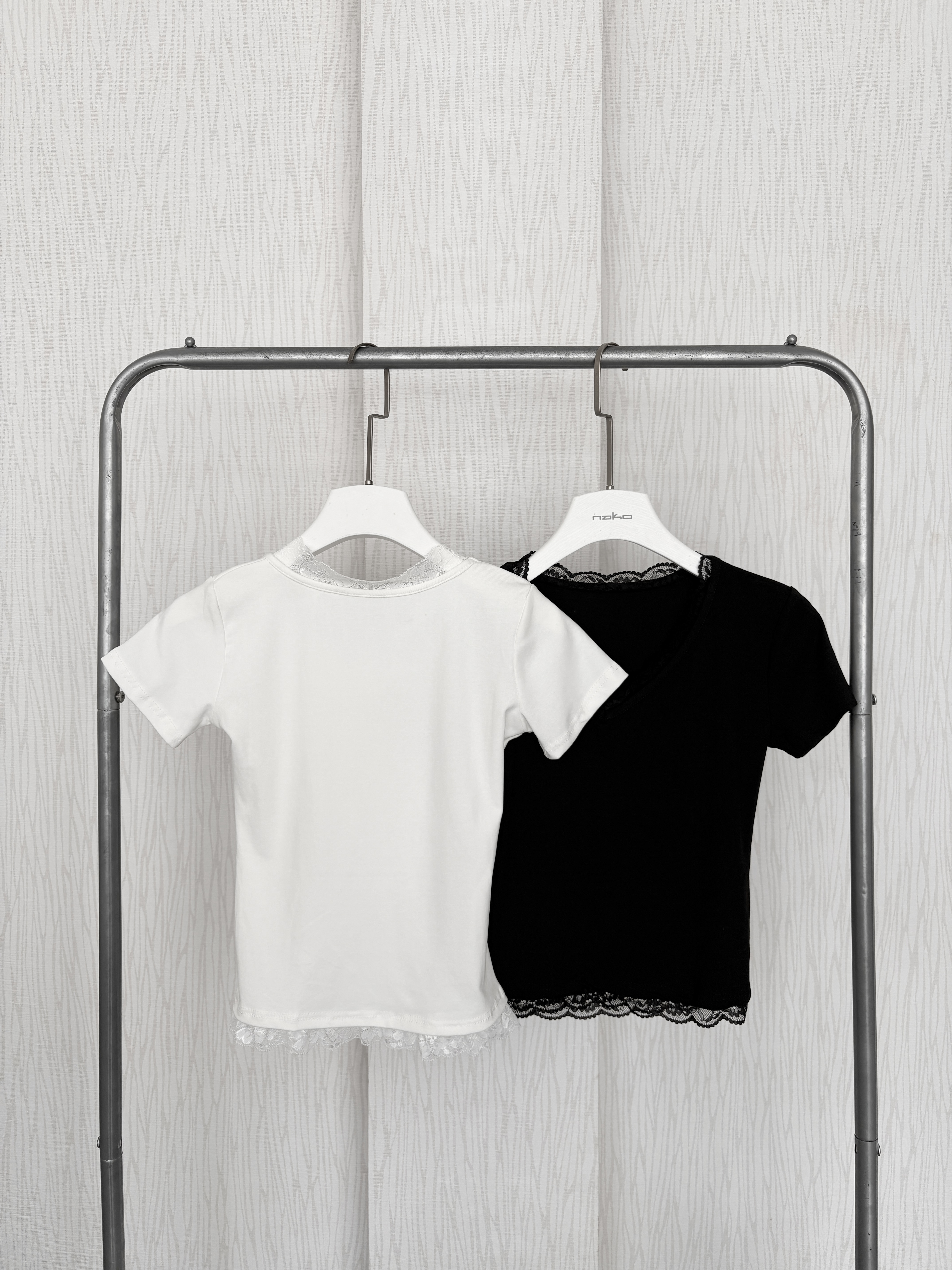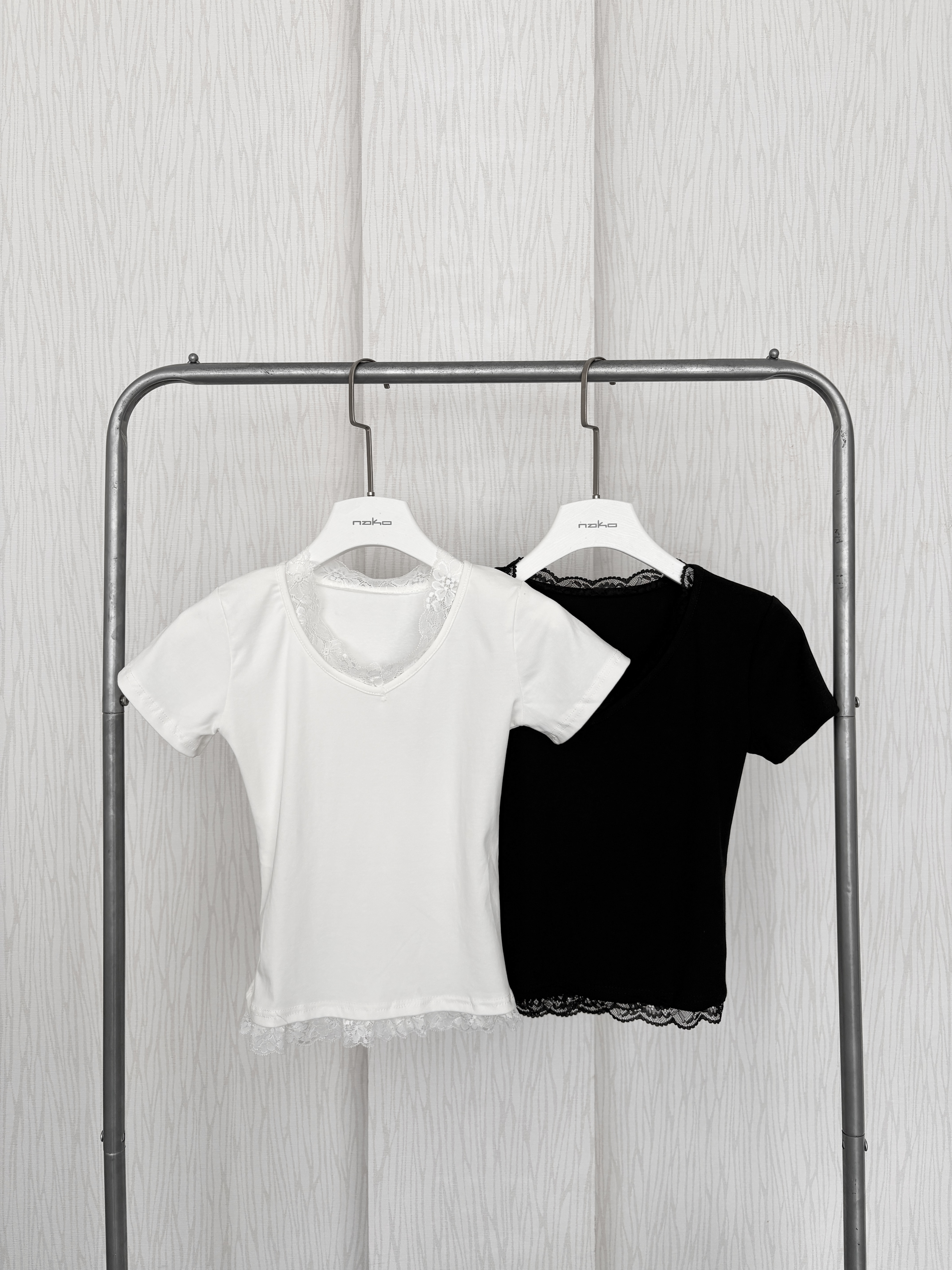 訂製款⊹V領蕾絲花邊素面腰身棉質上衣