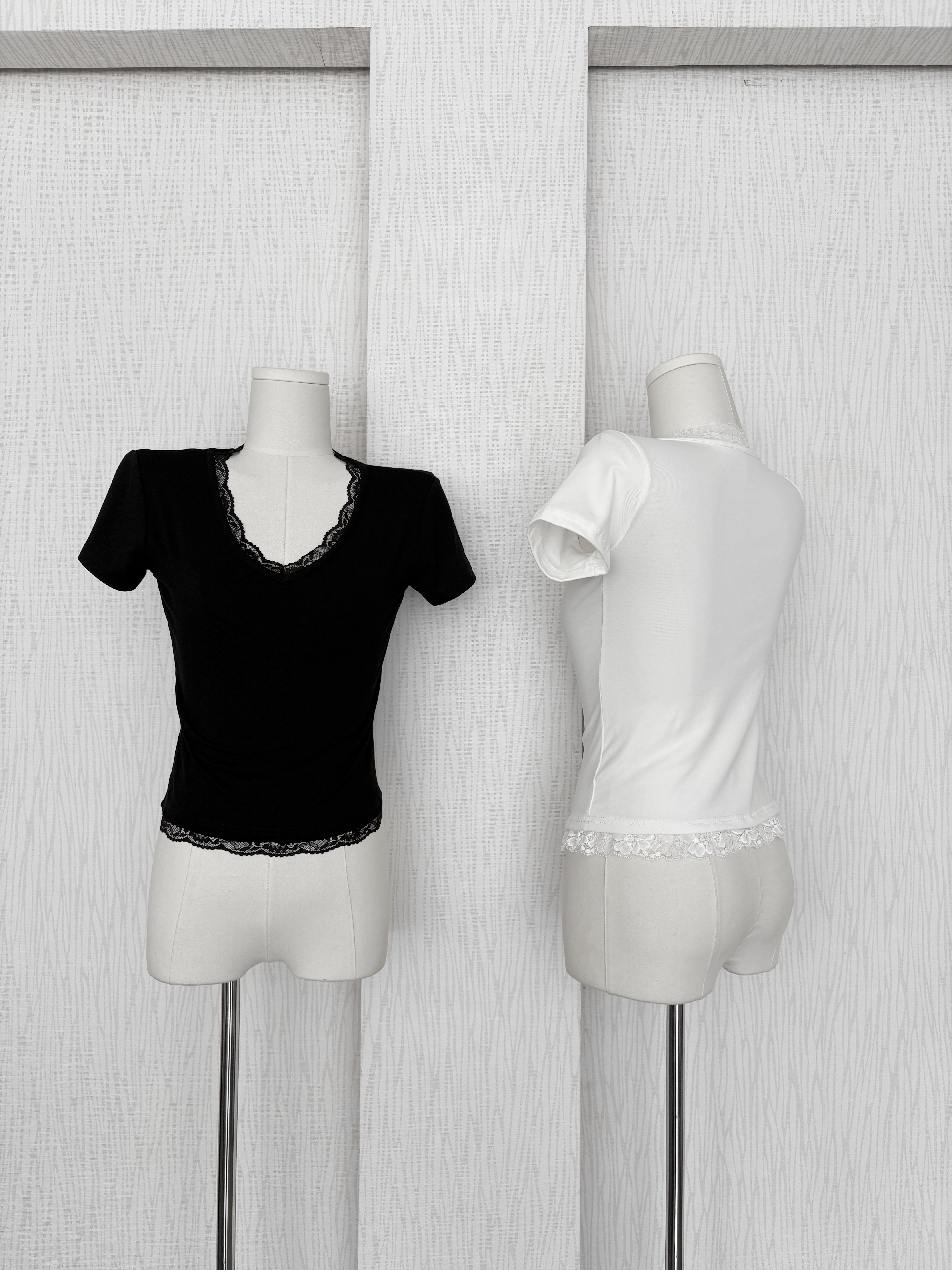 蕾絲小標軟綿短版T