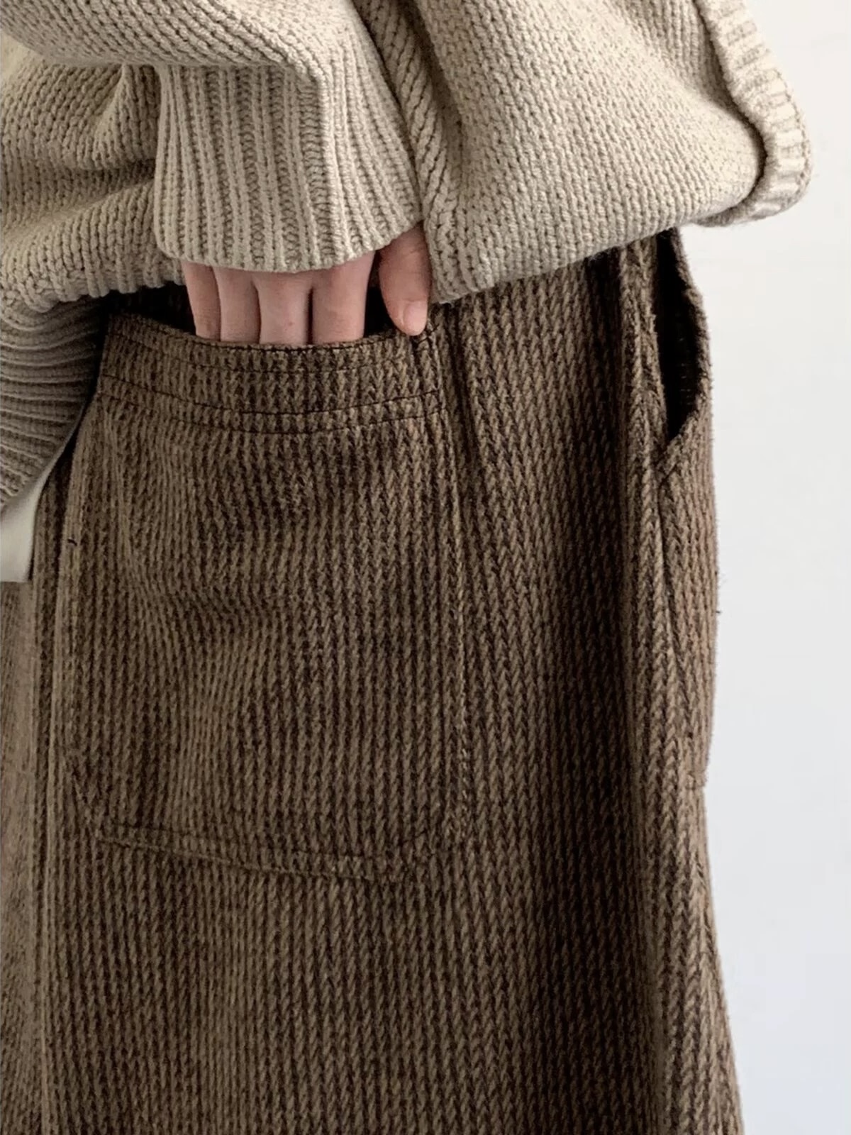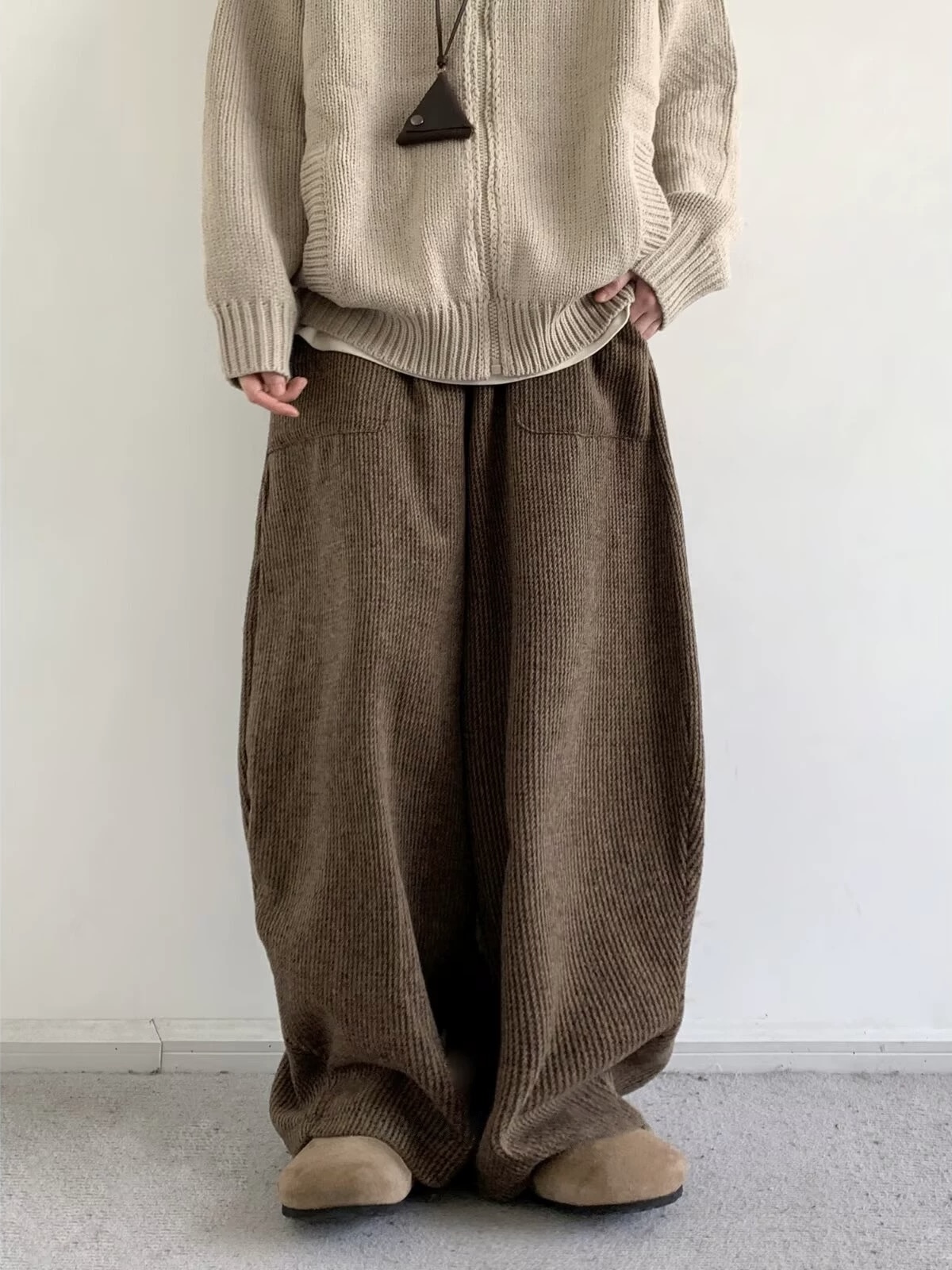 巧克力軟毛線彎刀褲