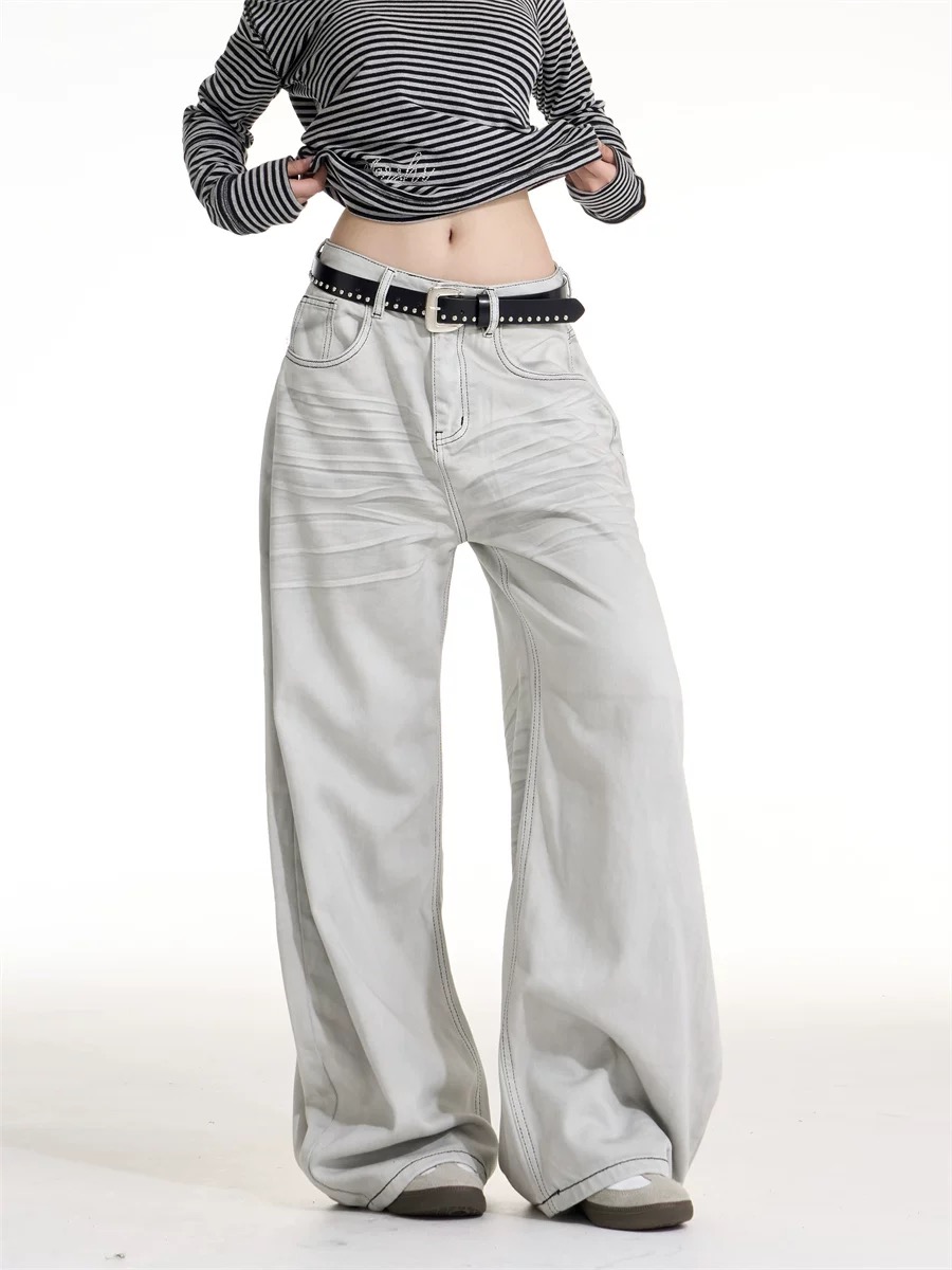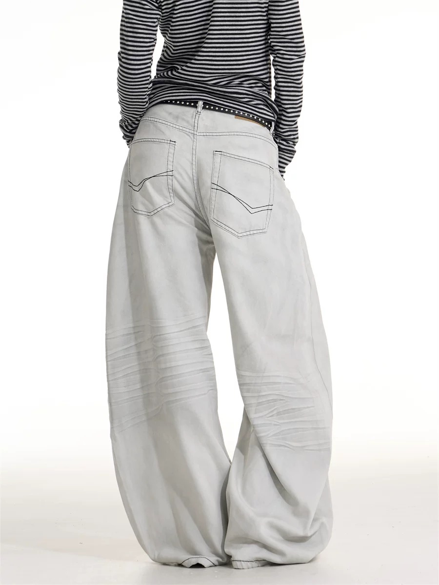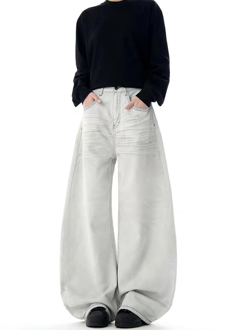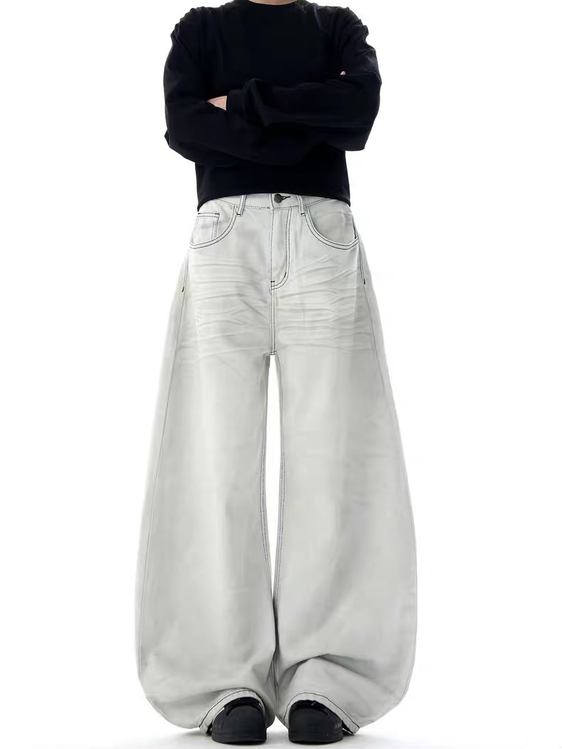 劃白碳黑牛仔直筒大寬褲