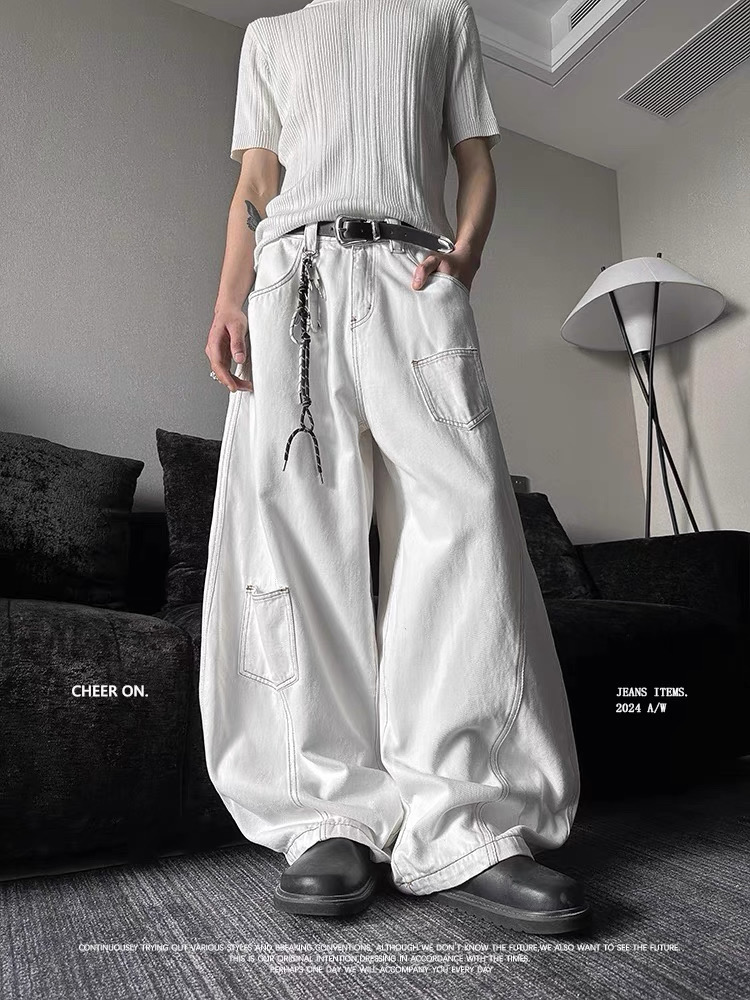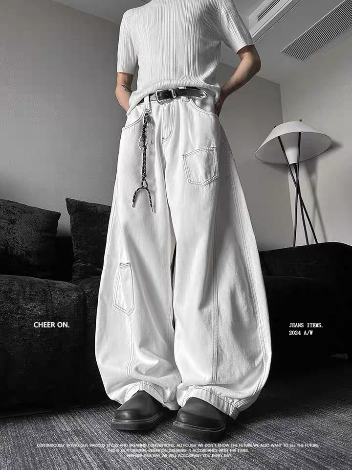 超模褲-復古A字牛仔大寬褲