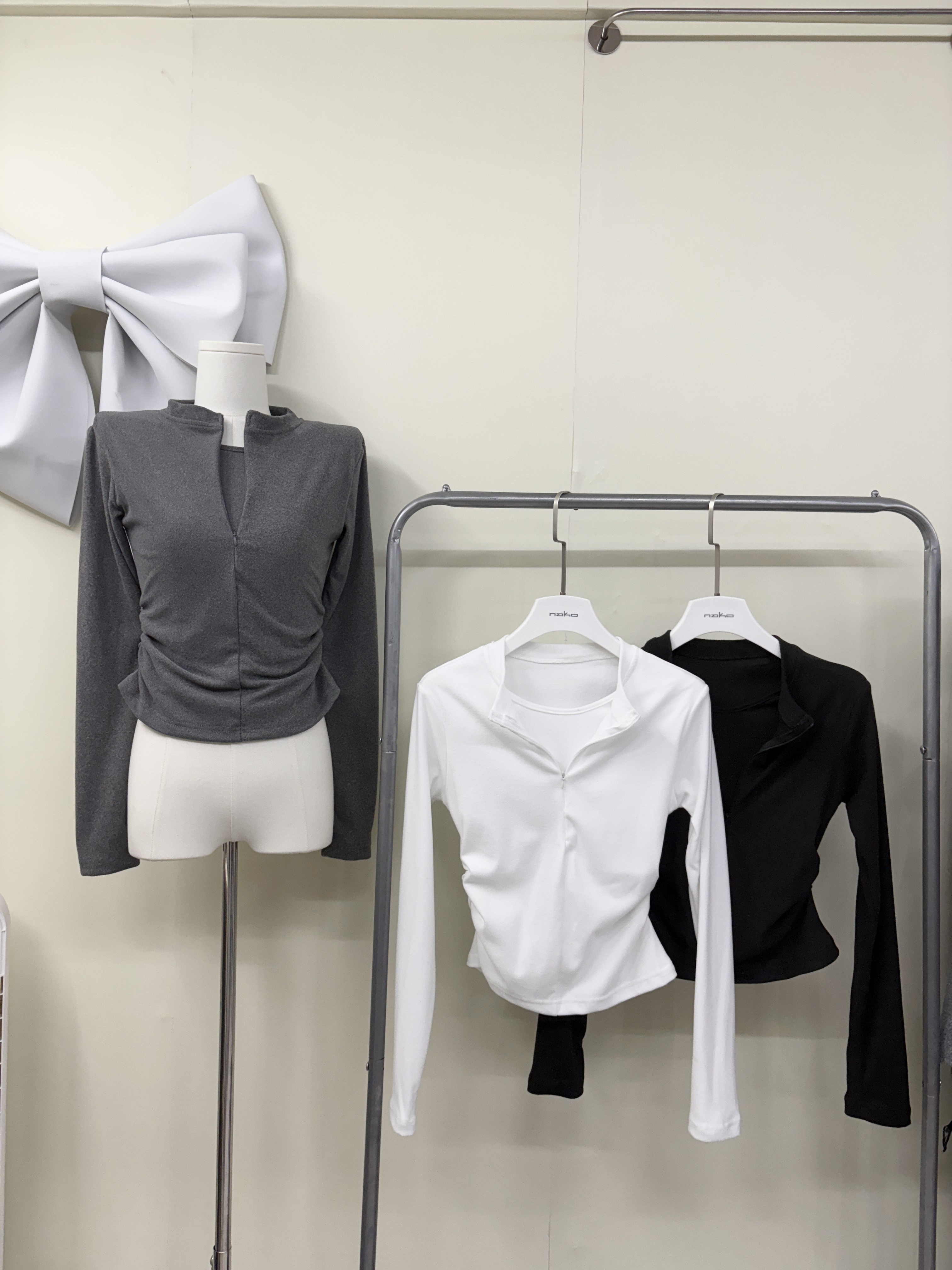 訂製款⊹開V扭結長袖超短版上衣