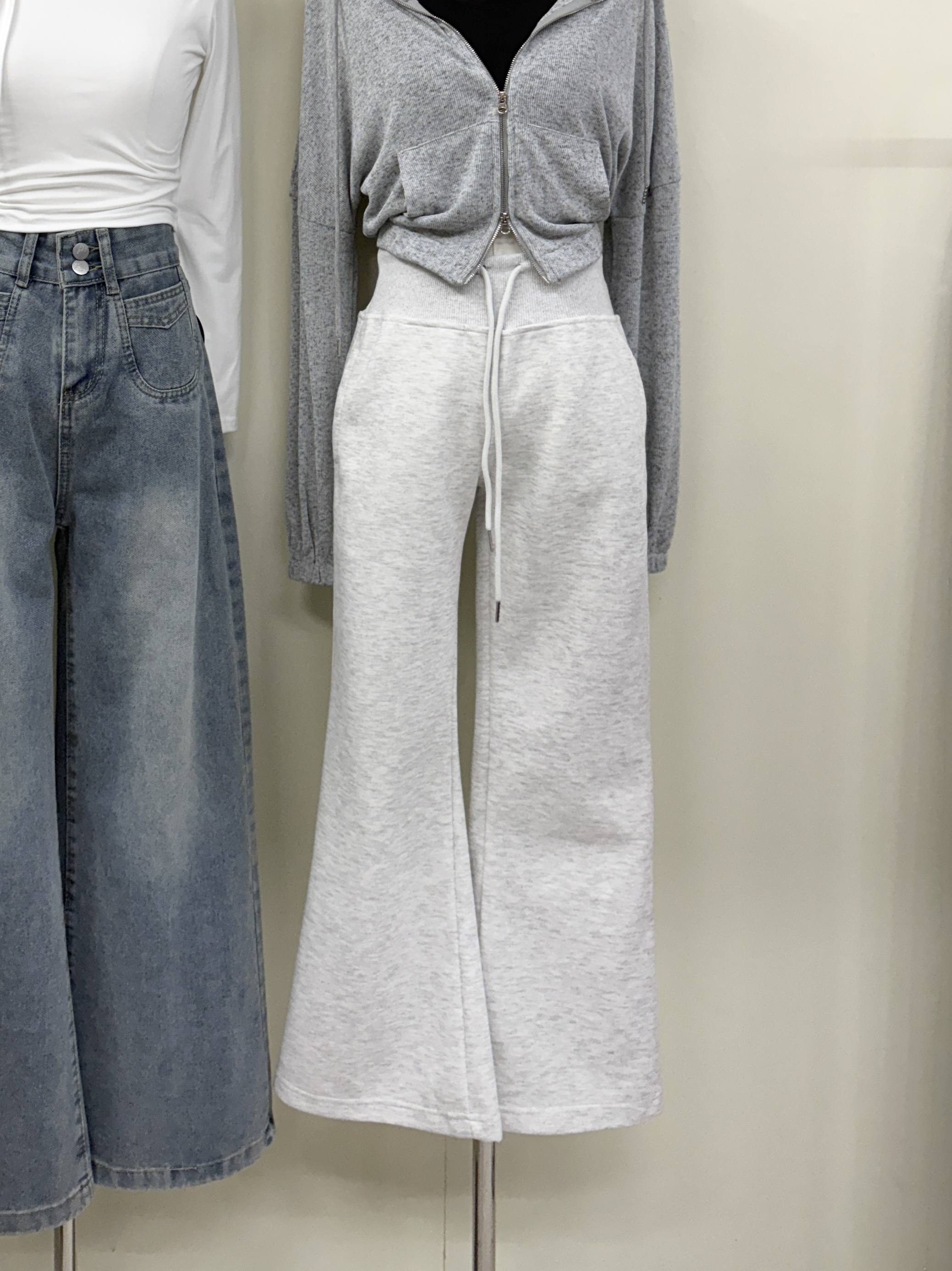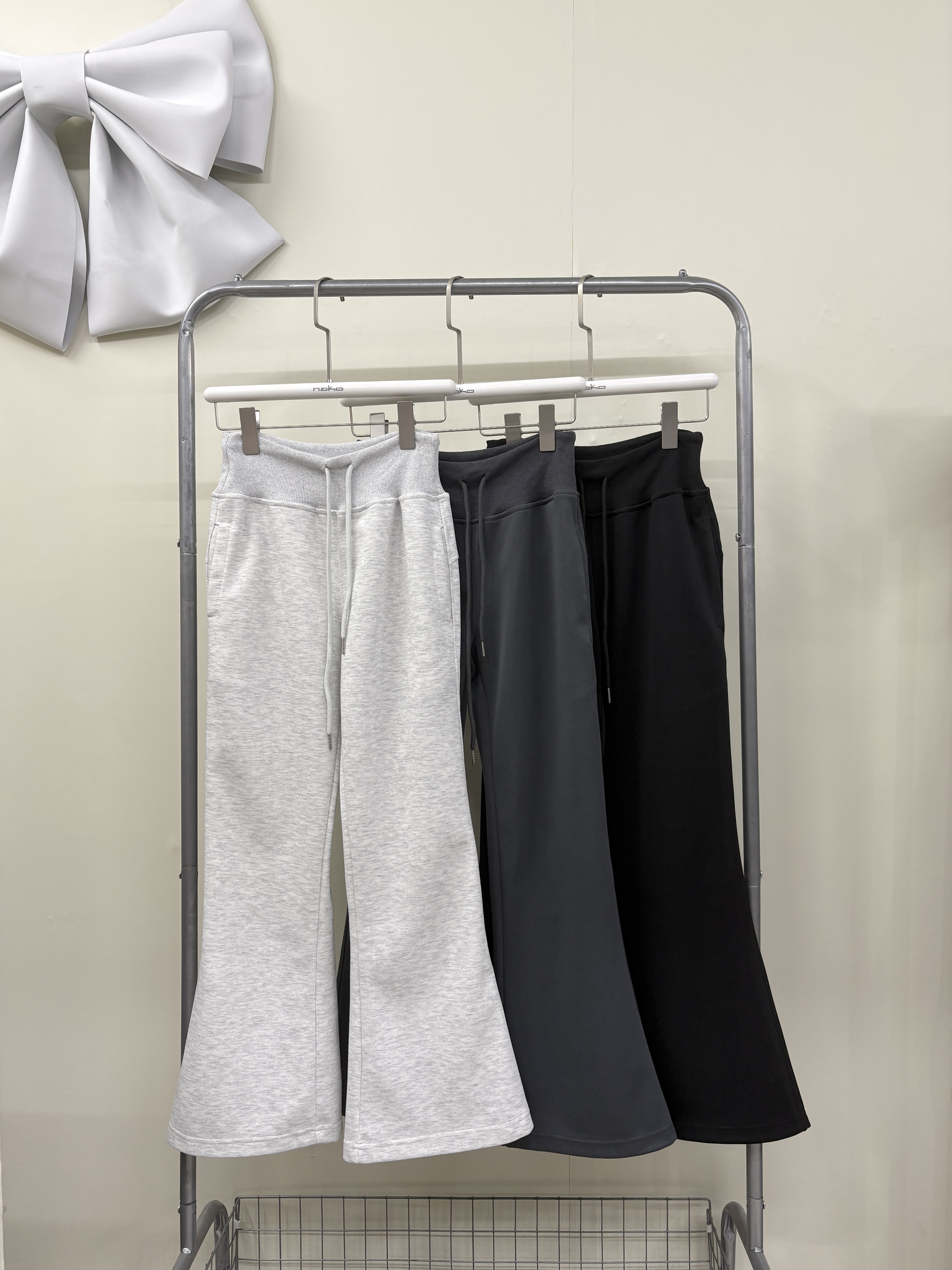 鬆緊腰抽繩微喇叭棉褲