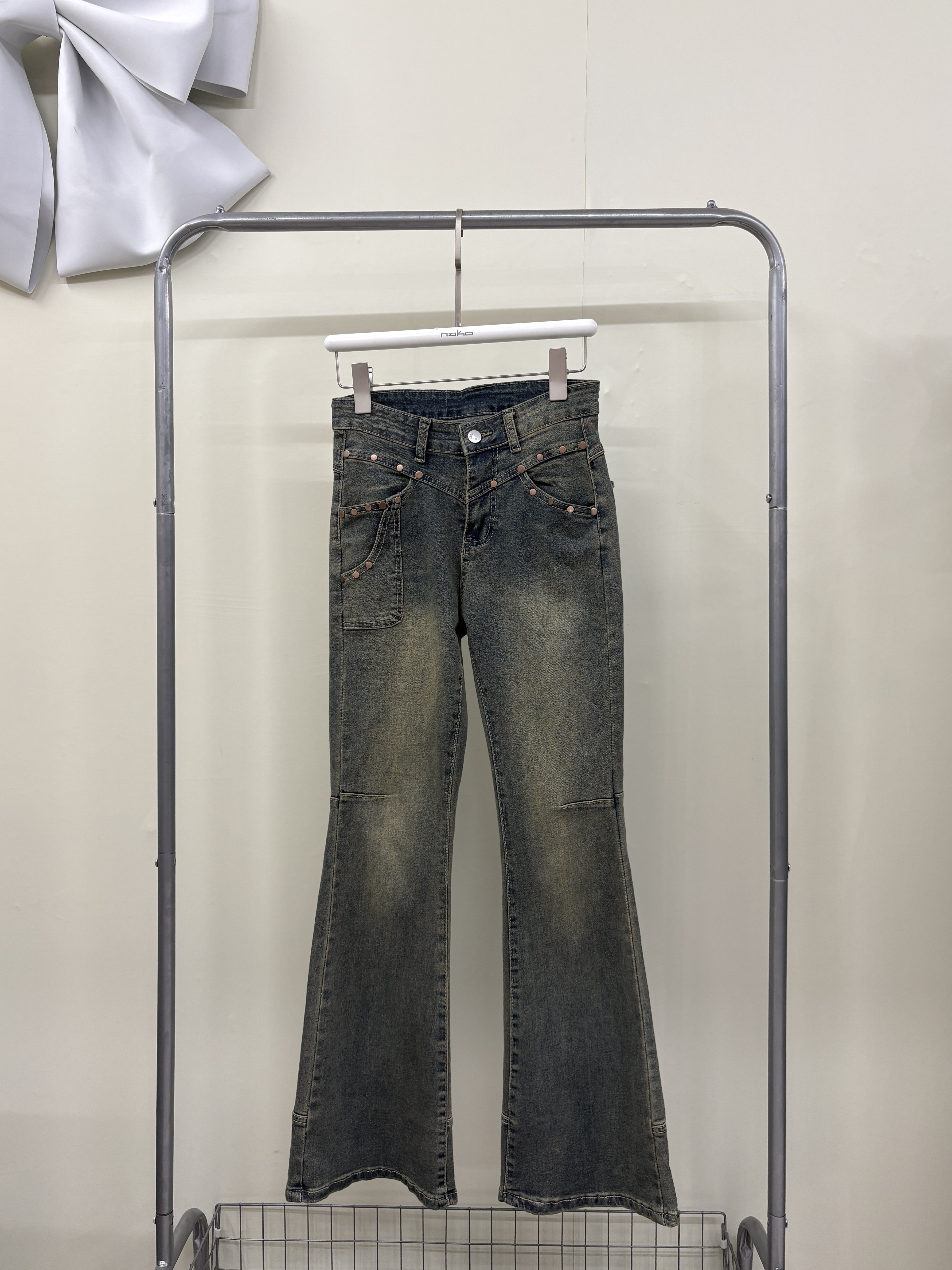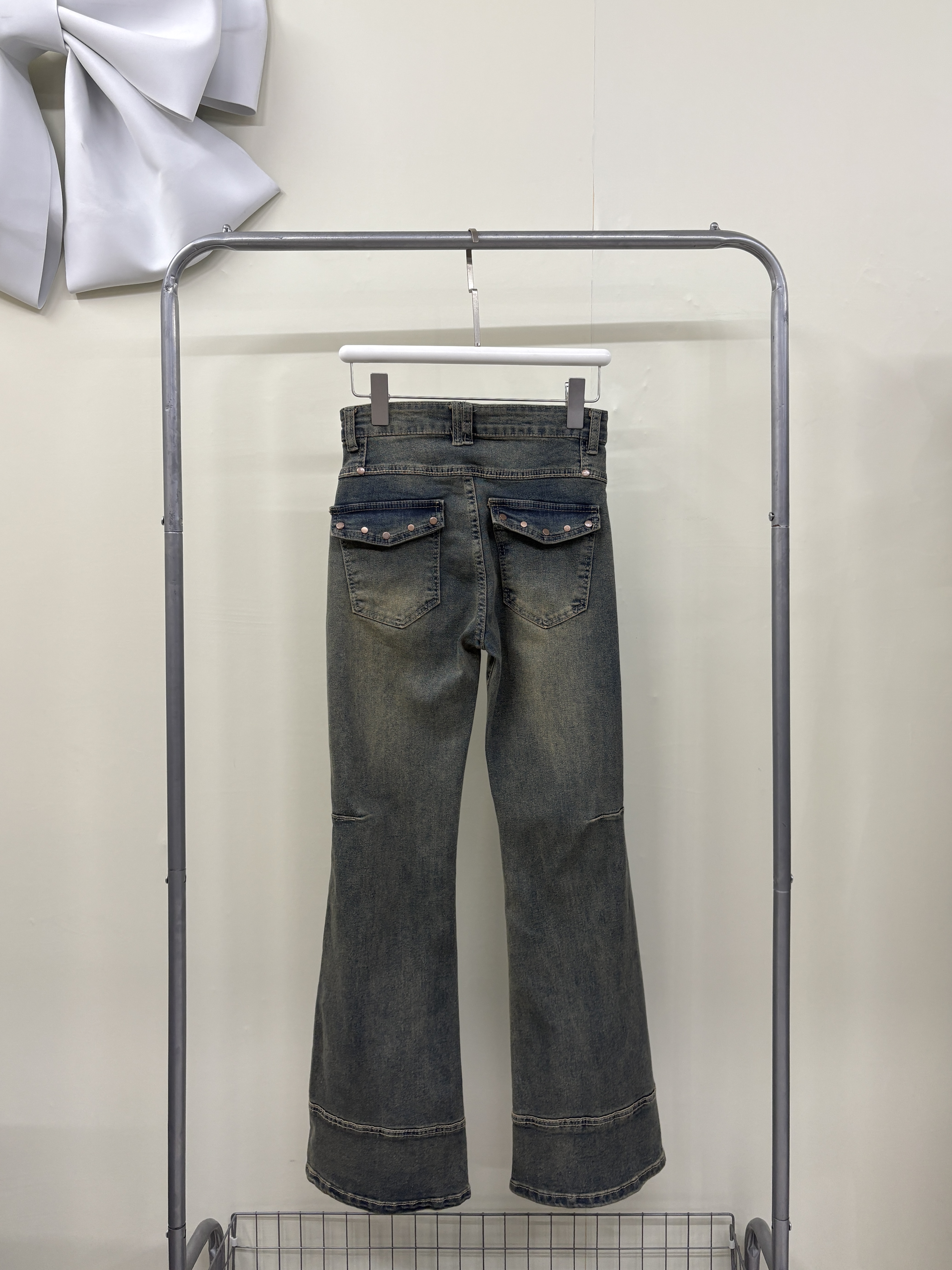 【限量現貨】Y2K刷白假摺感中低腰牛仔喇叭褲