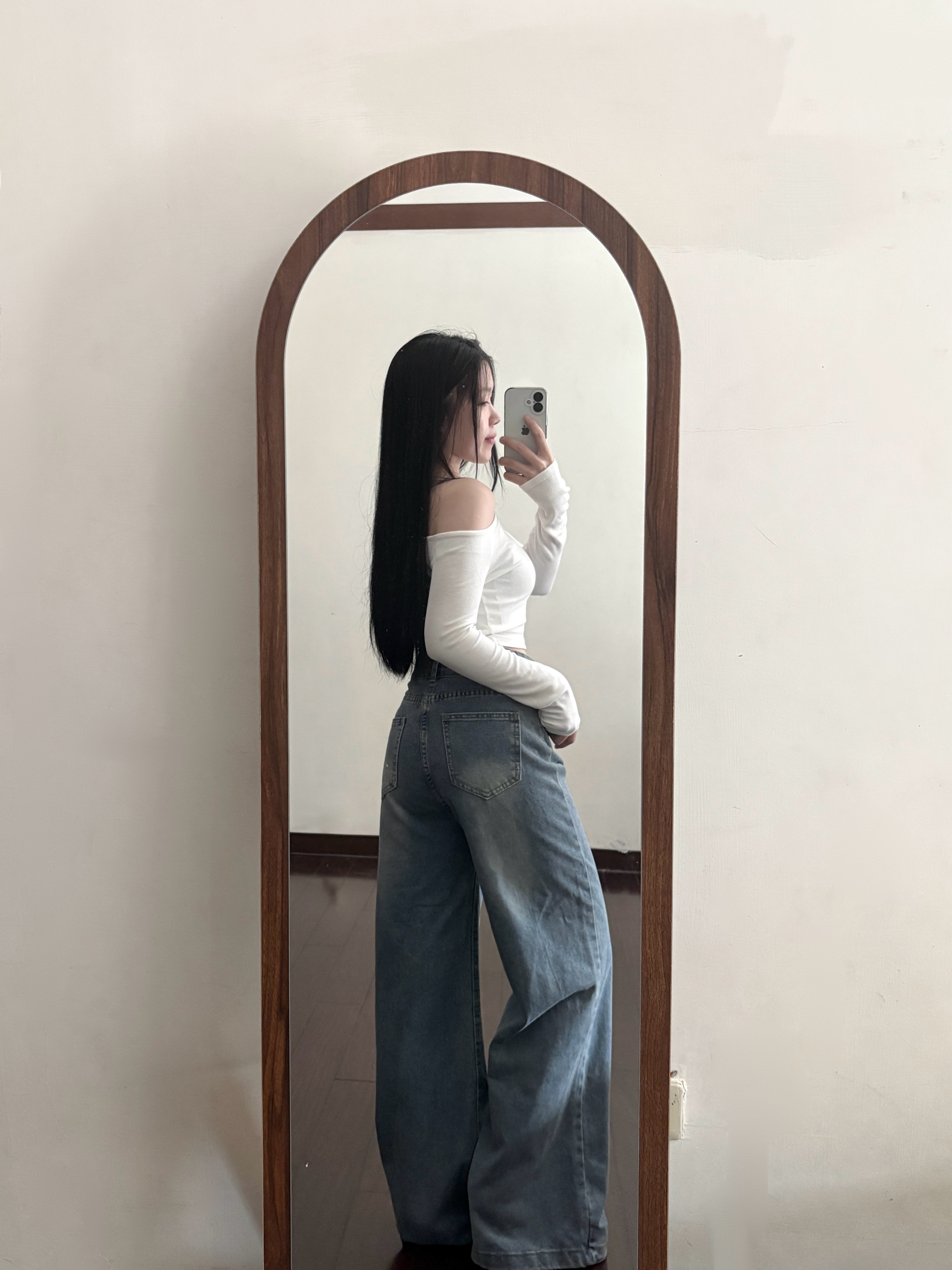 闆娘最愛款♡抓痕感A字黑色牛仔寬褲