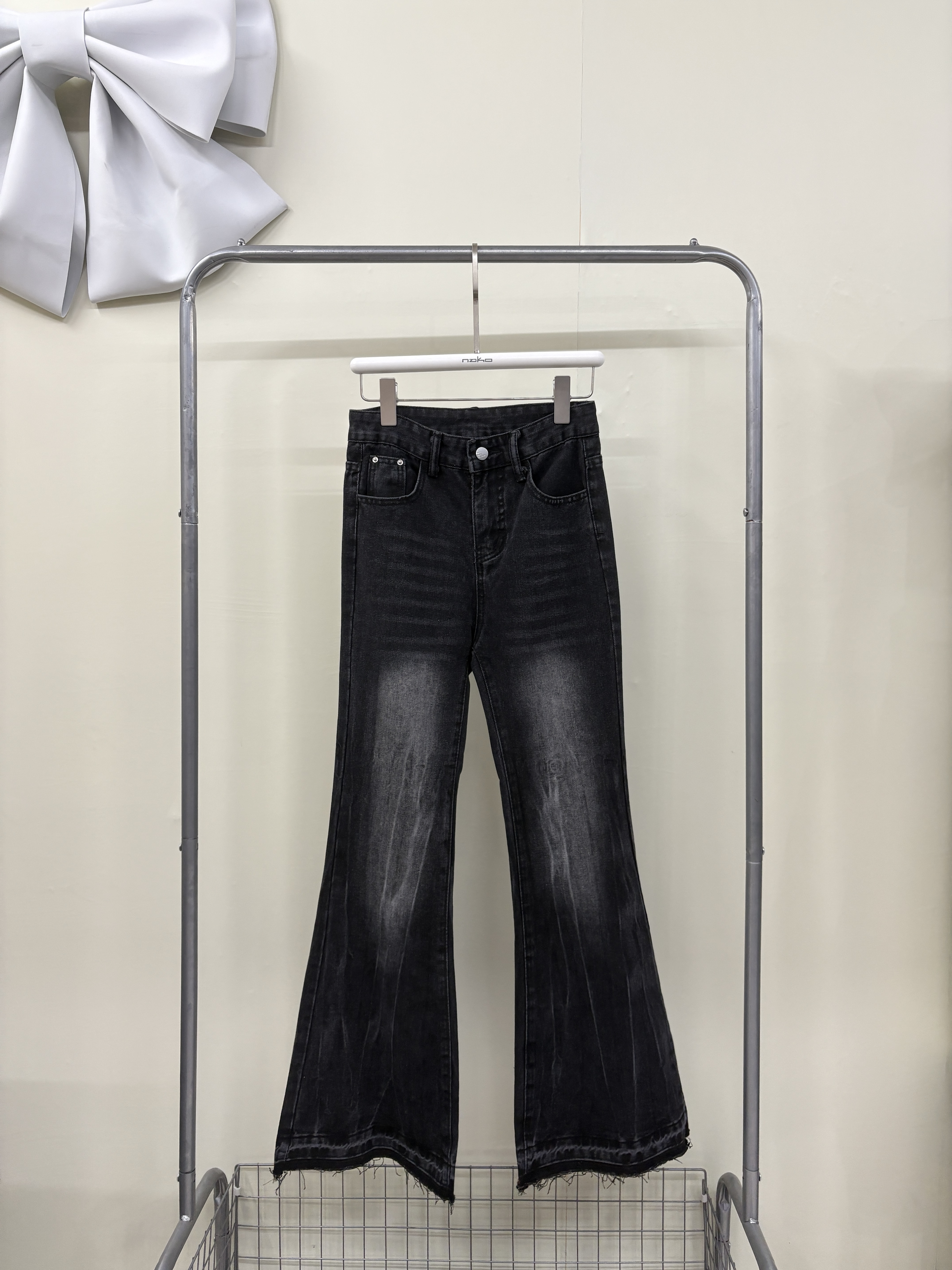 Y2K劃白不收邊碳黑牛仔喇叭褲