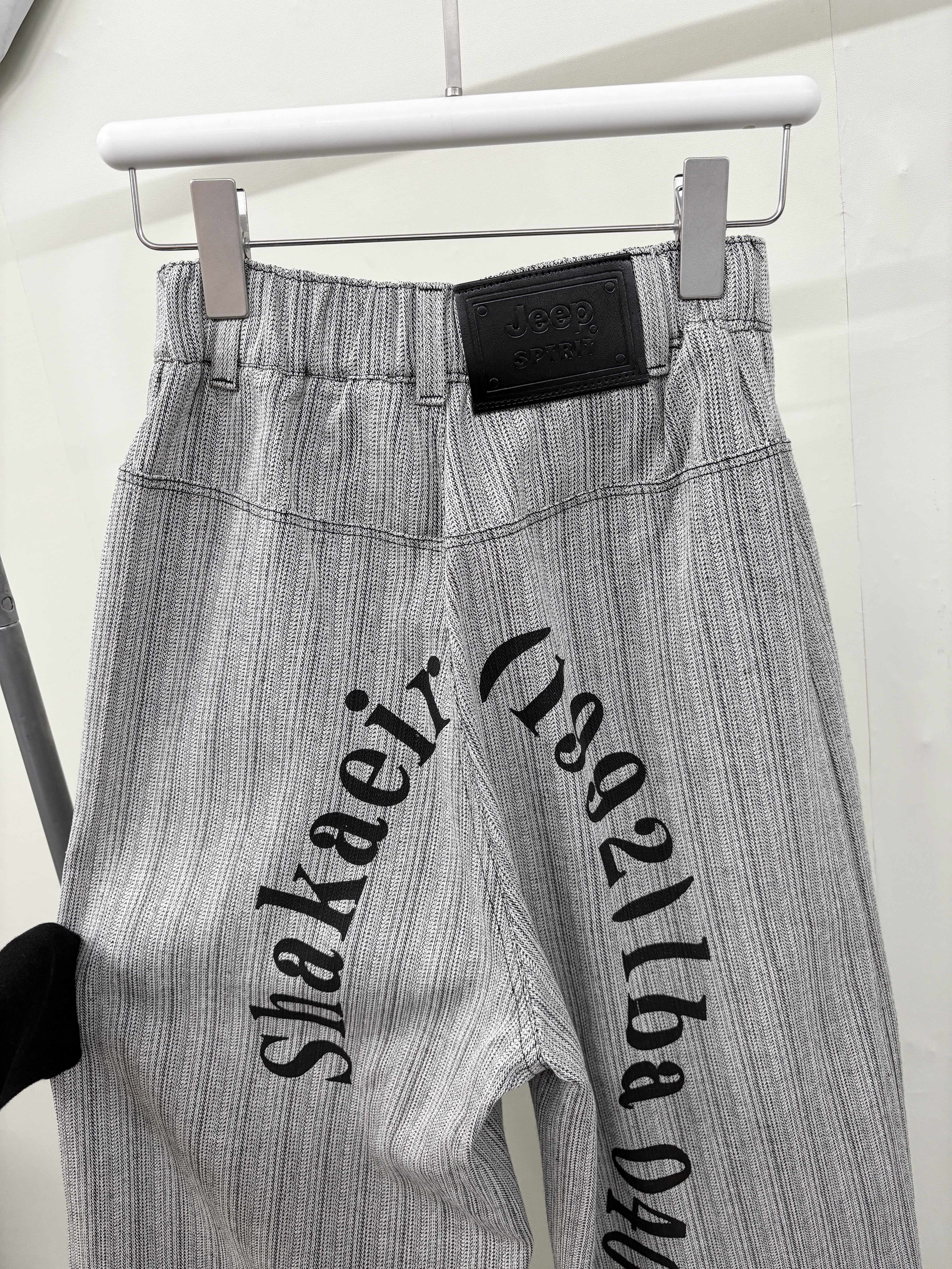 廢土風豹紋水洗煙灰色牛仔彎刀褲