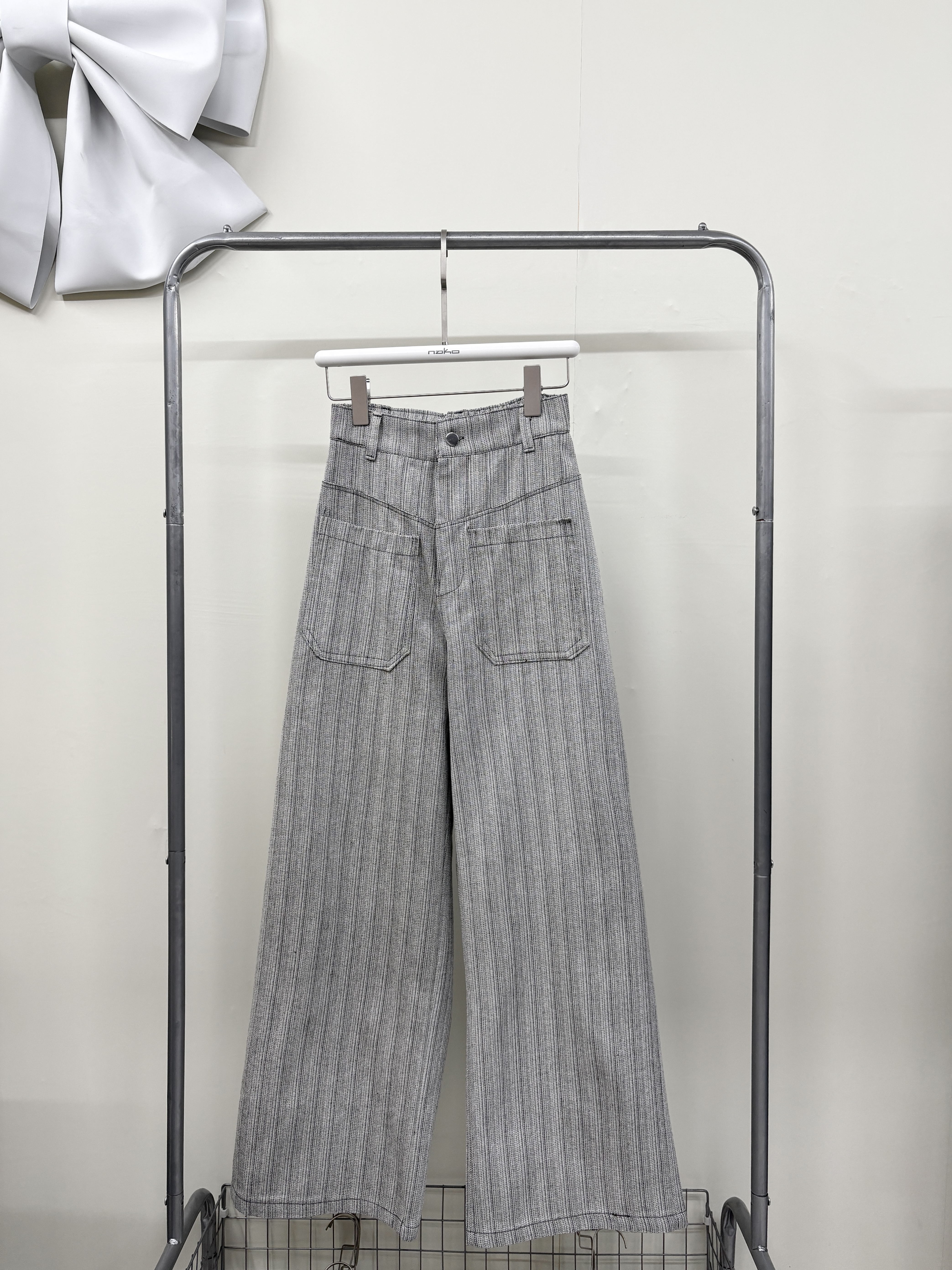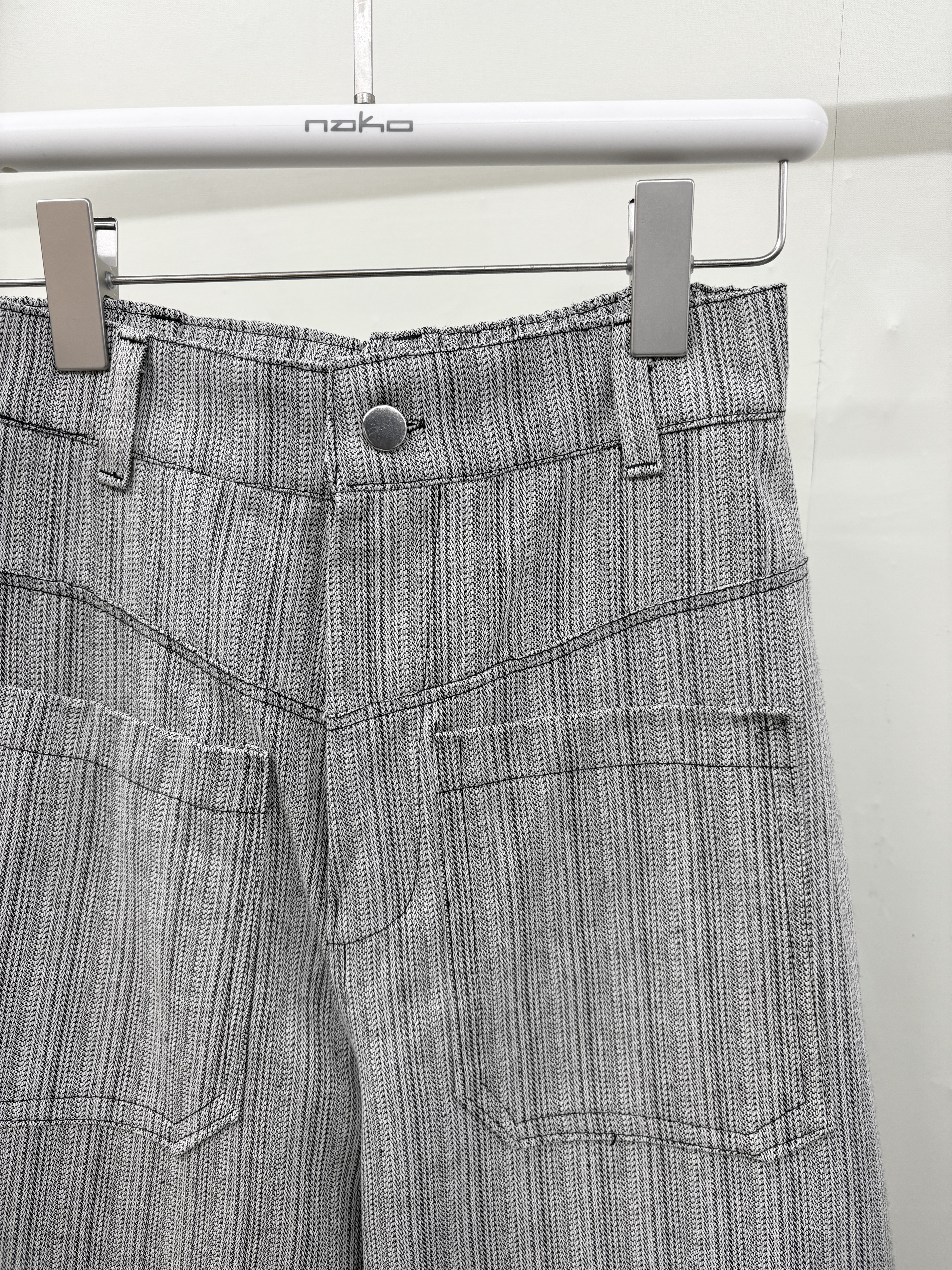 [男款]街頭風斜毛邊工裝口袋高腰牛仔寬褲