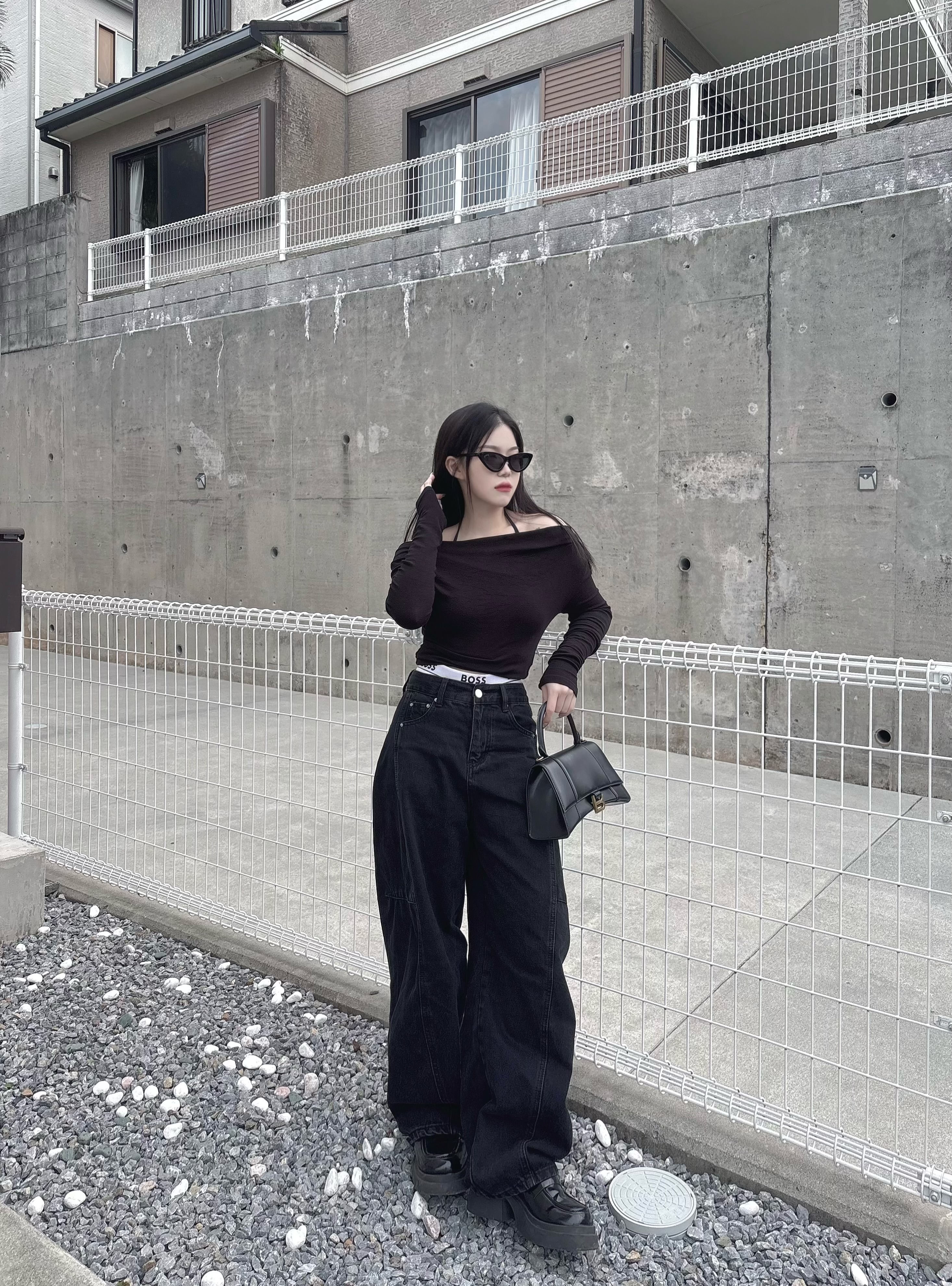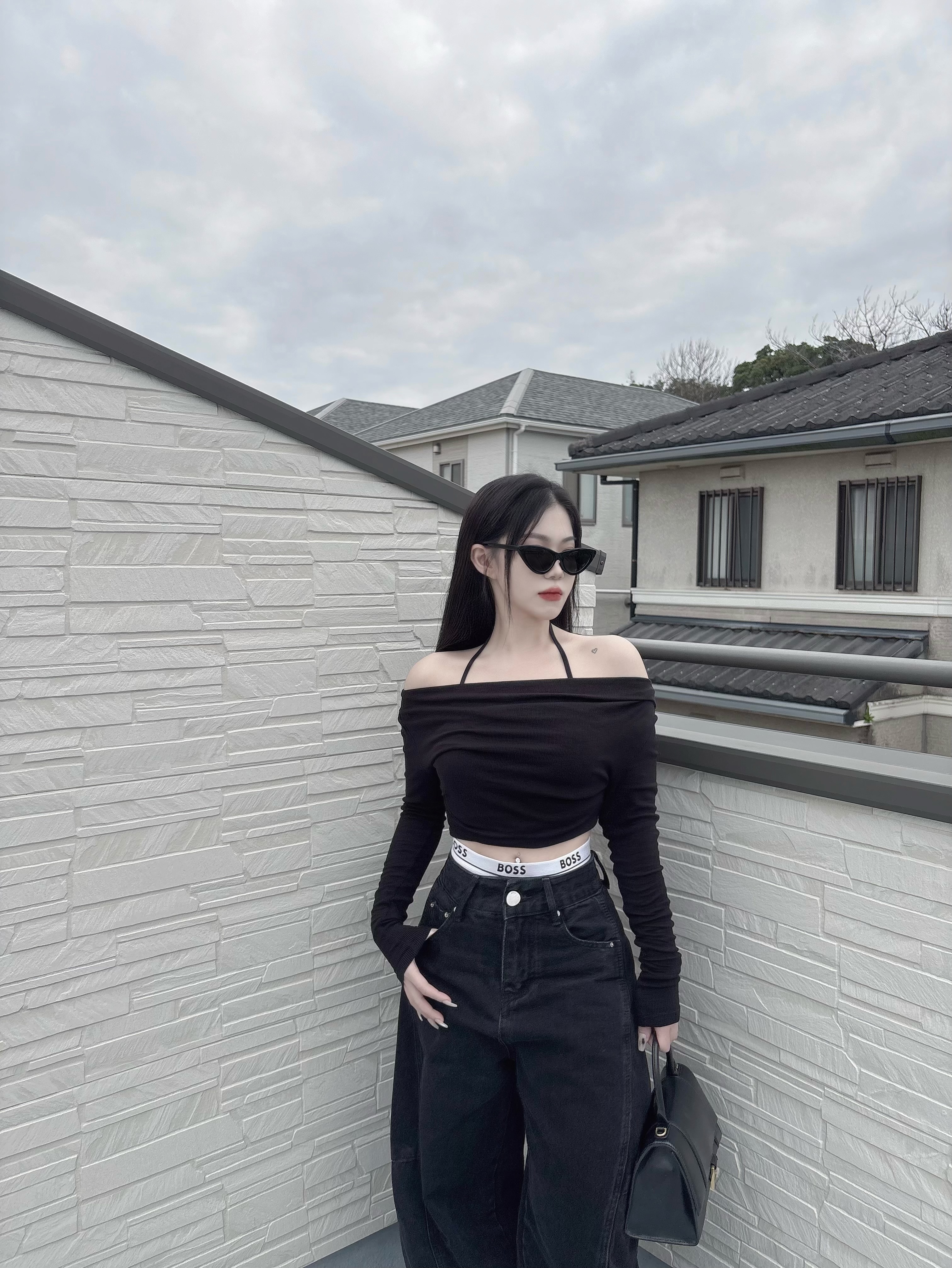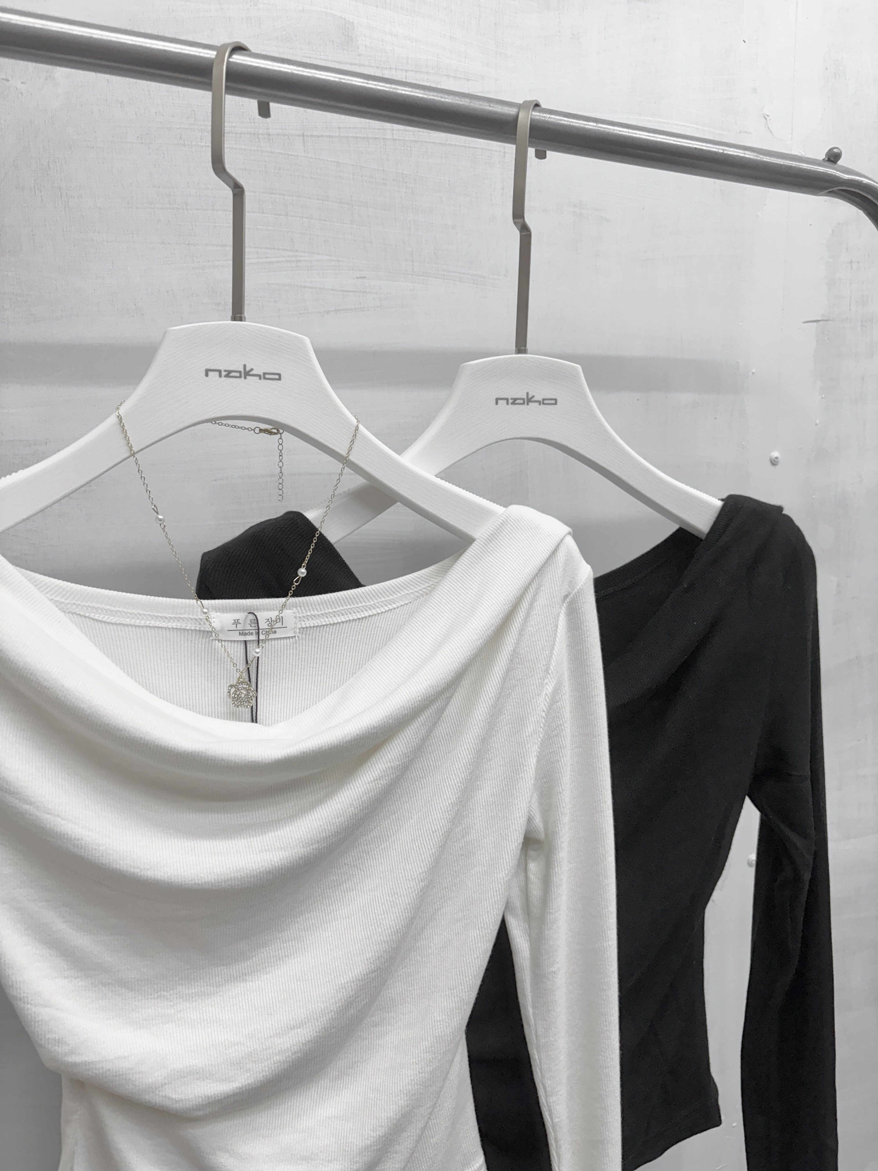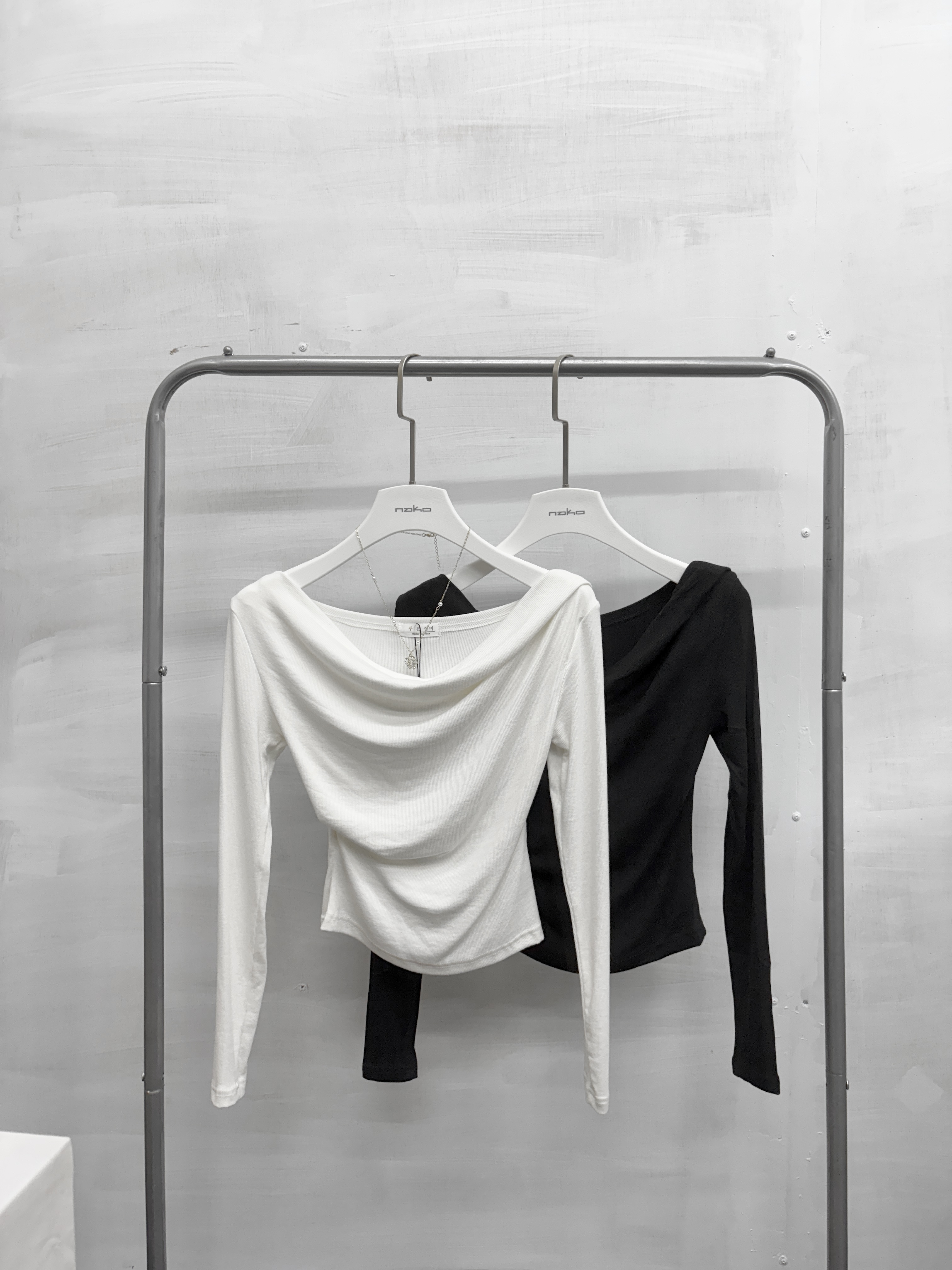 超顯瘦.ᐟ.ᐟ 一字領軟綿薄長袖上衣