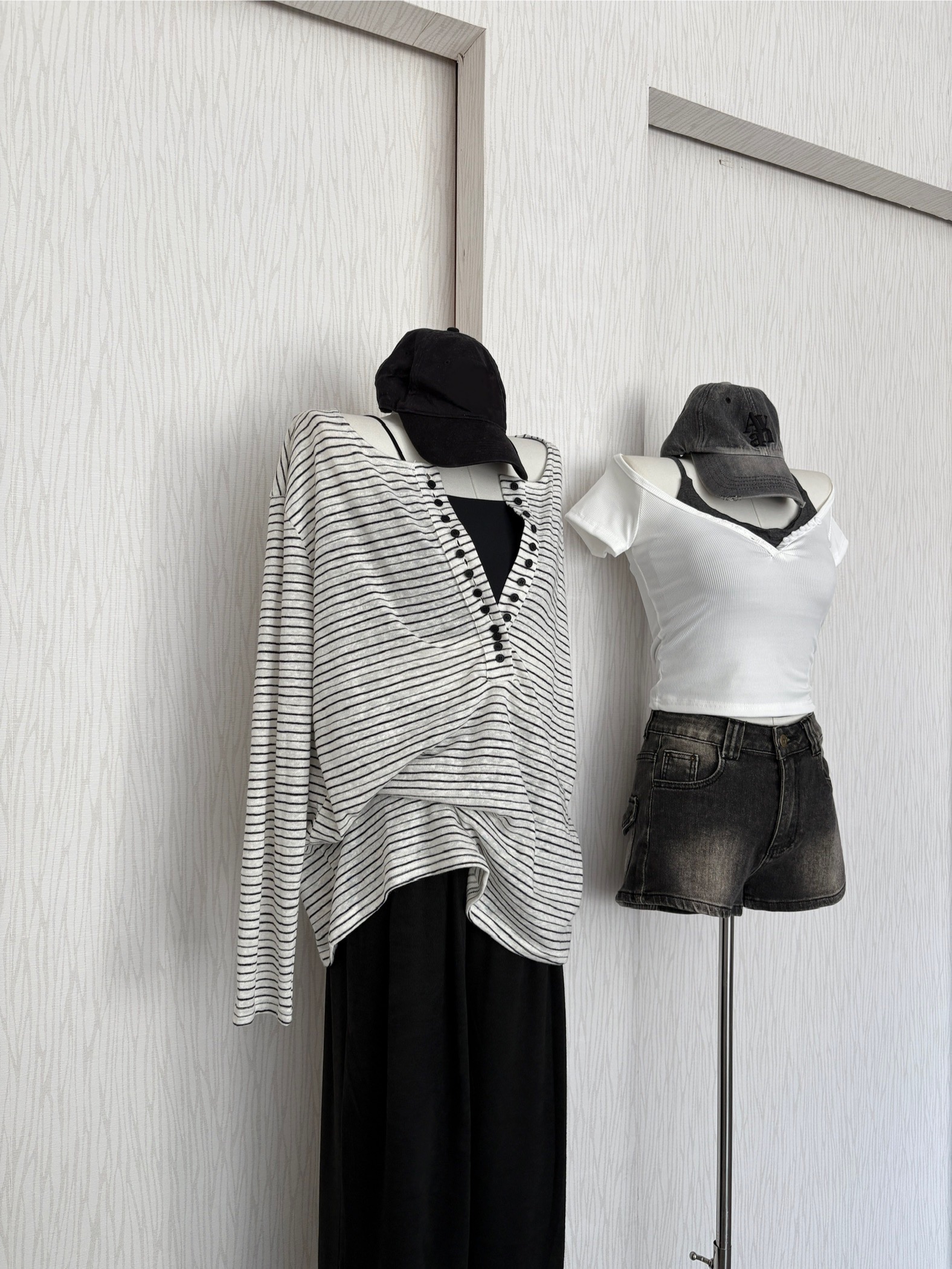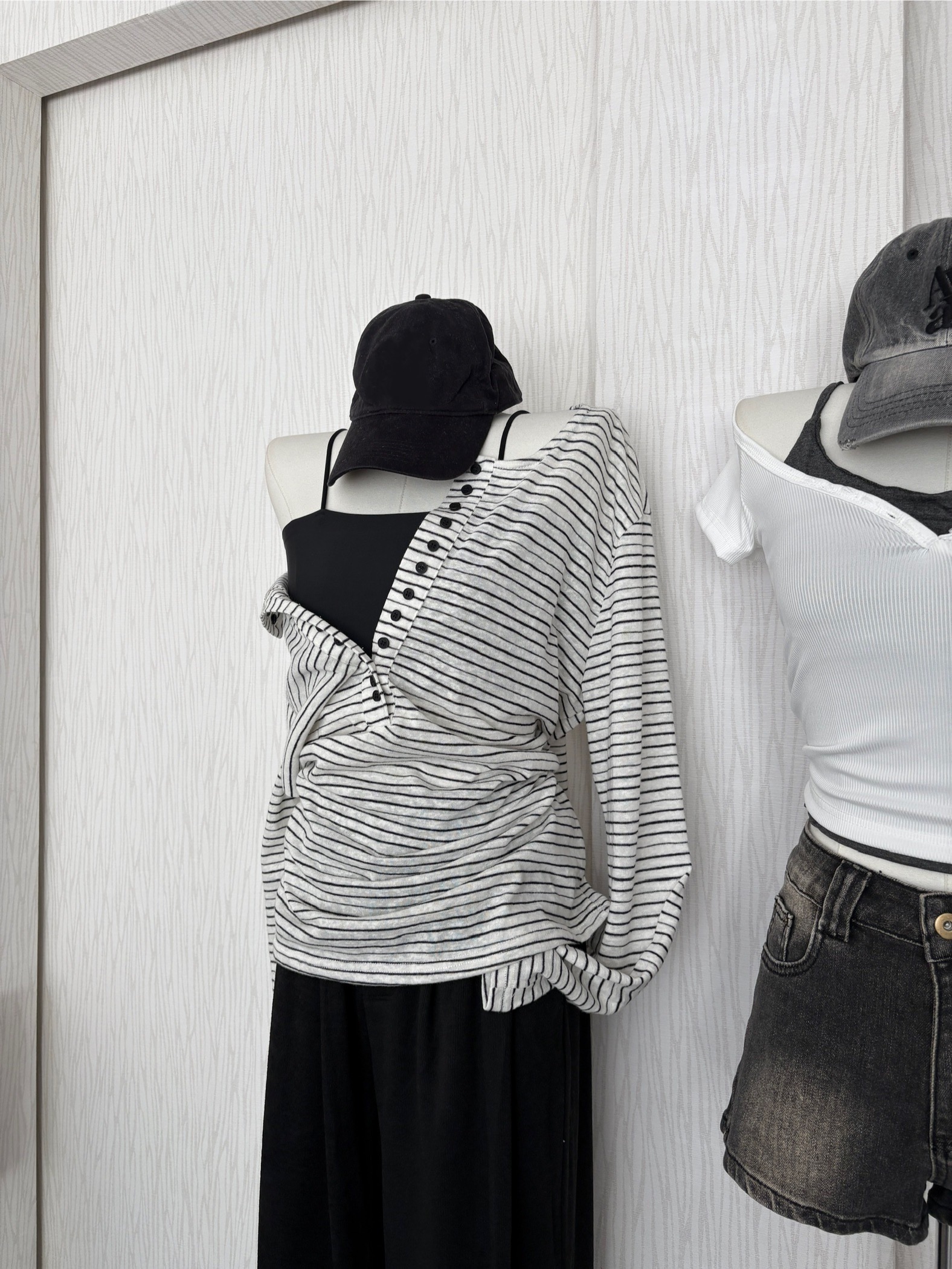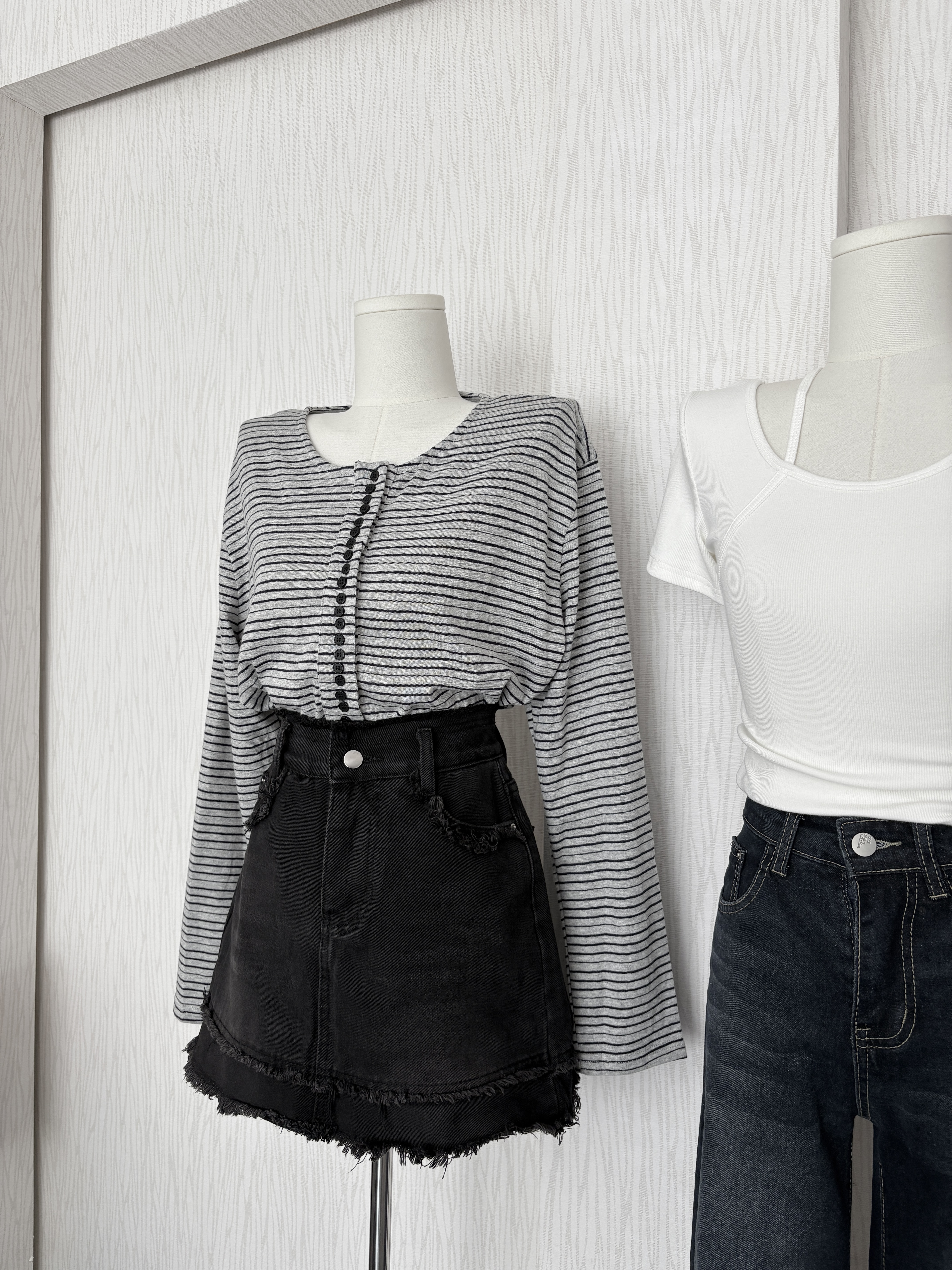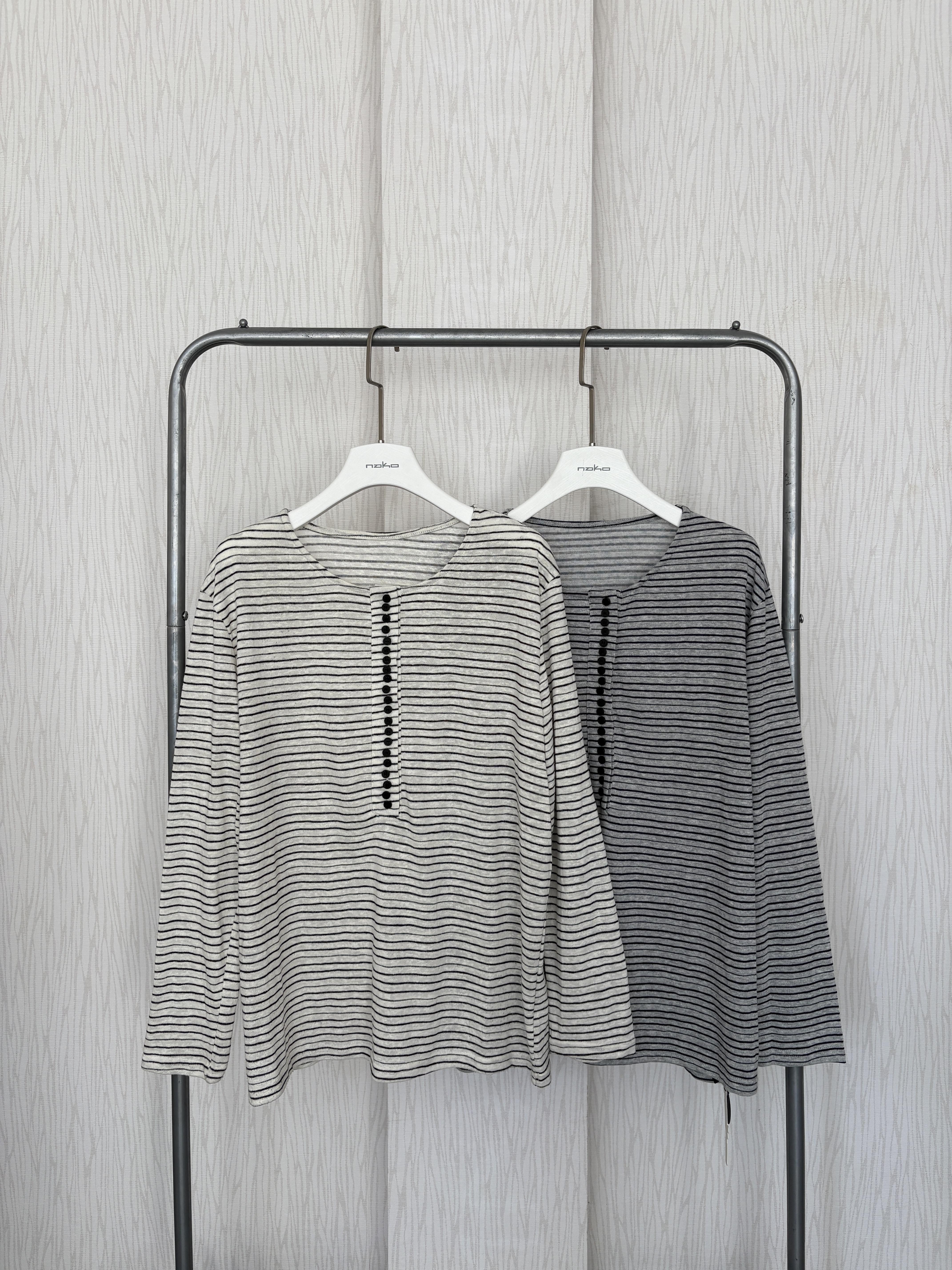 【限量現貨】正韓🇰🇷圓領多扣細橫條薄棉休閒上衣