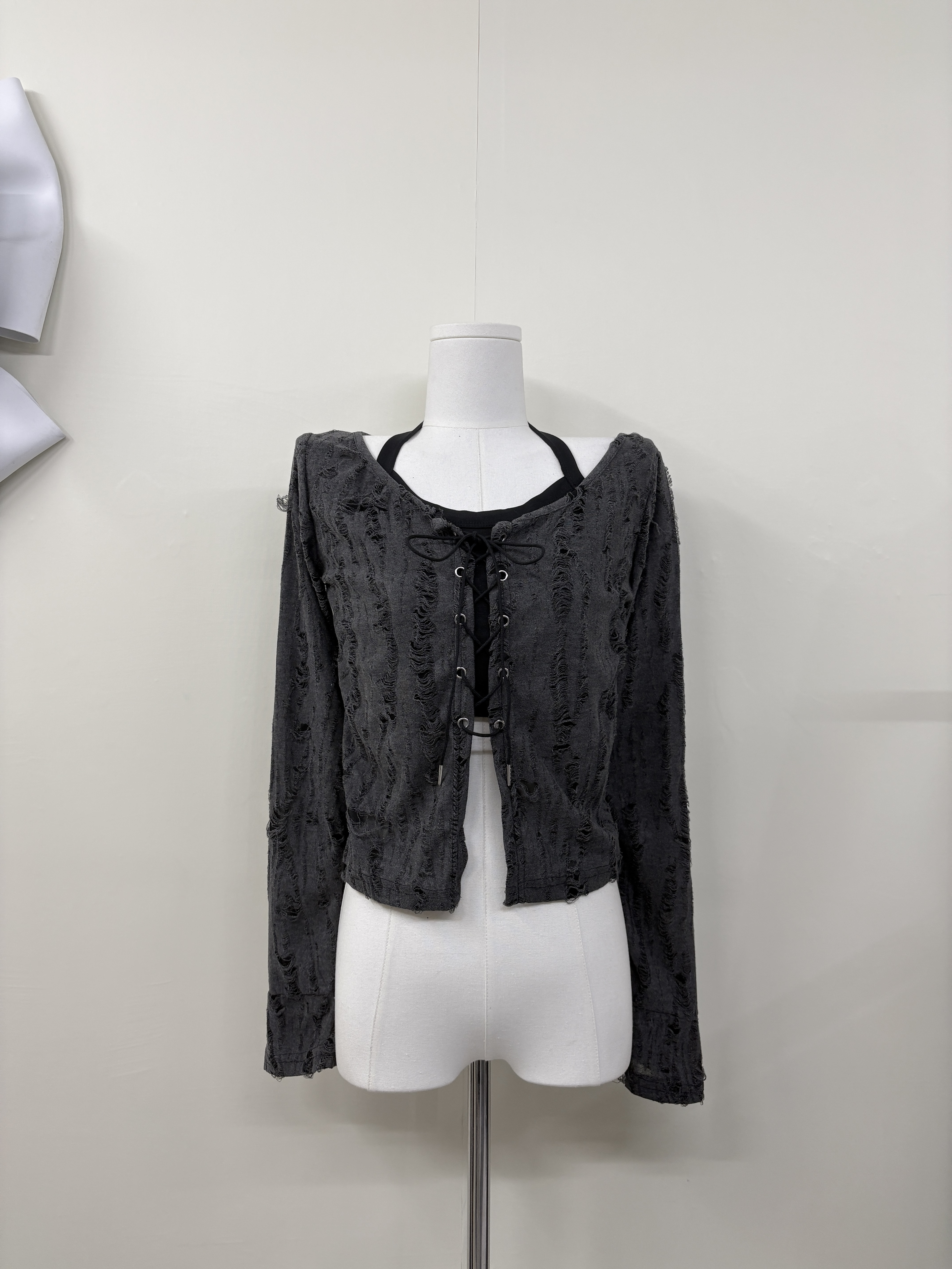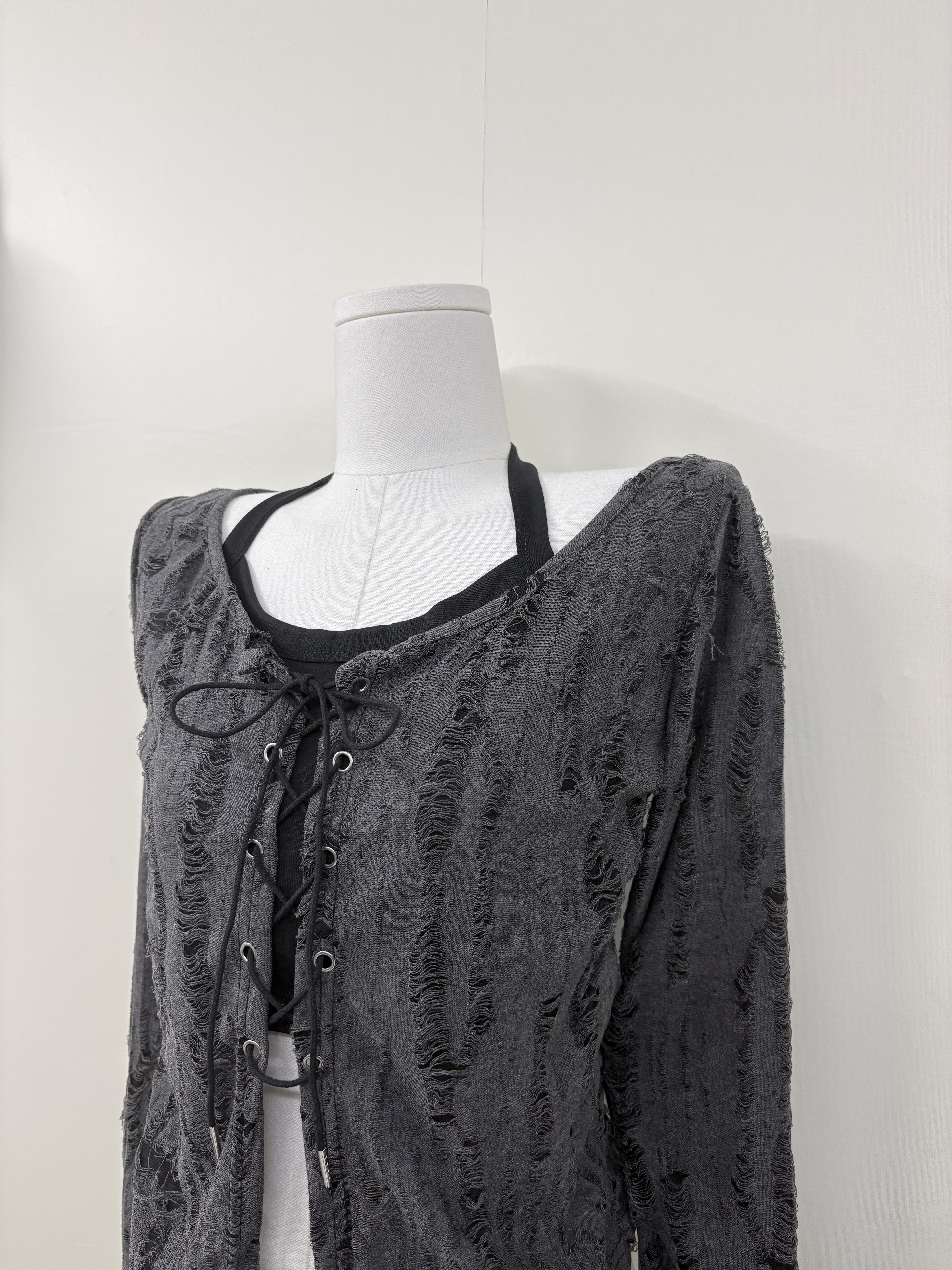糯米花灰色綁帶真兩件上衣(附無罩杯背心)
