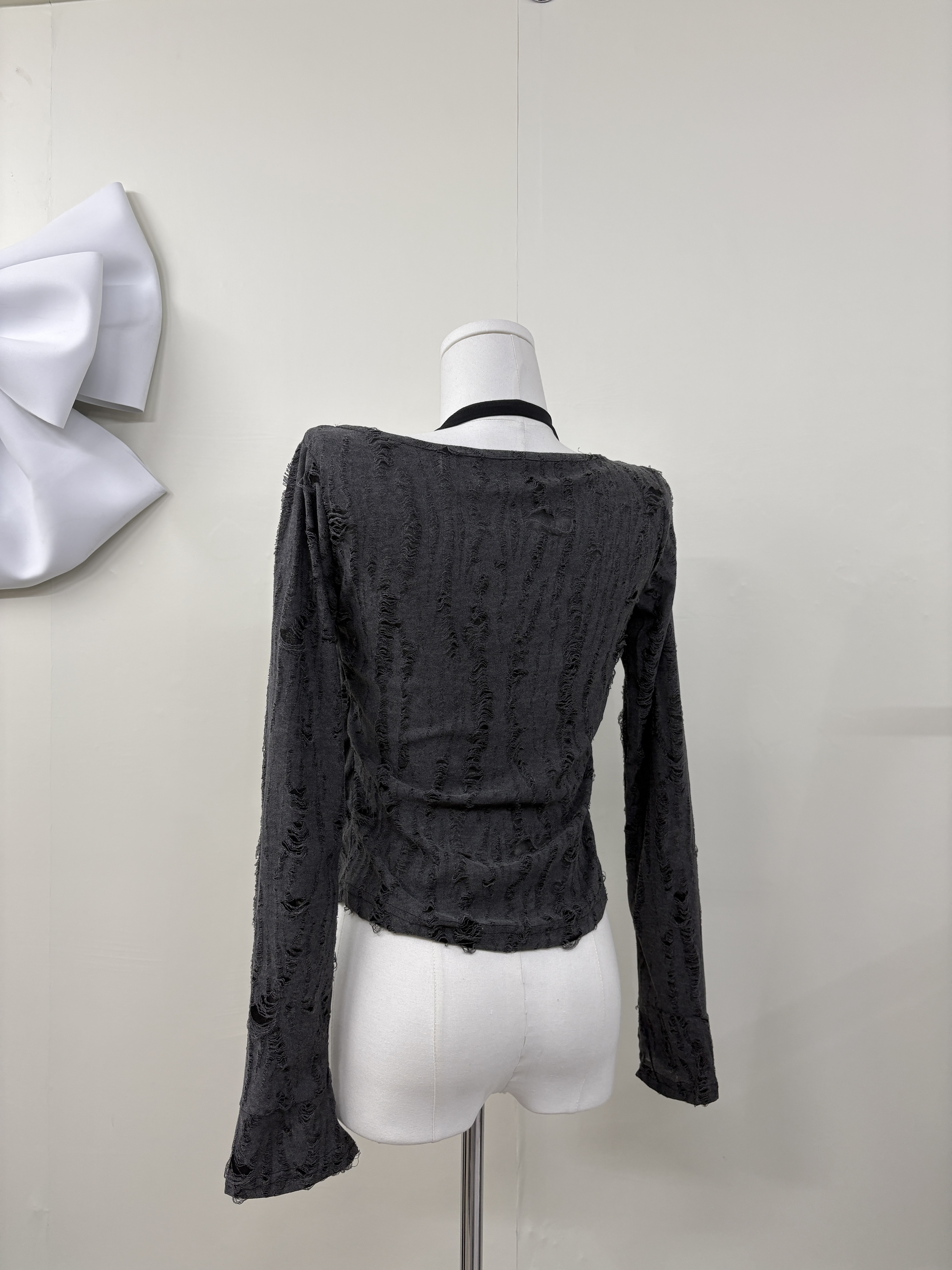 三扣黑邊超短版冰山灰彈性涼感上衣