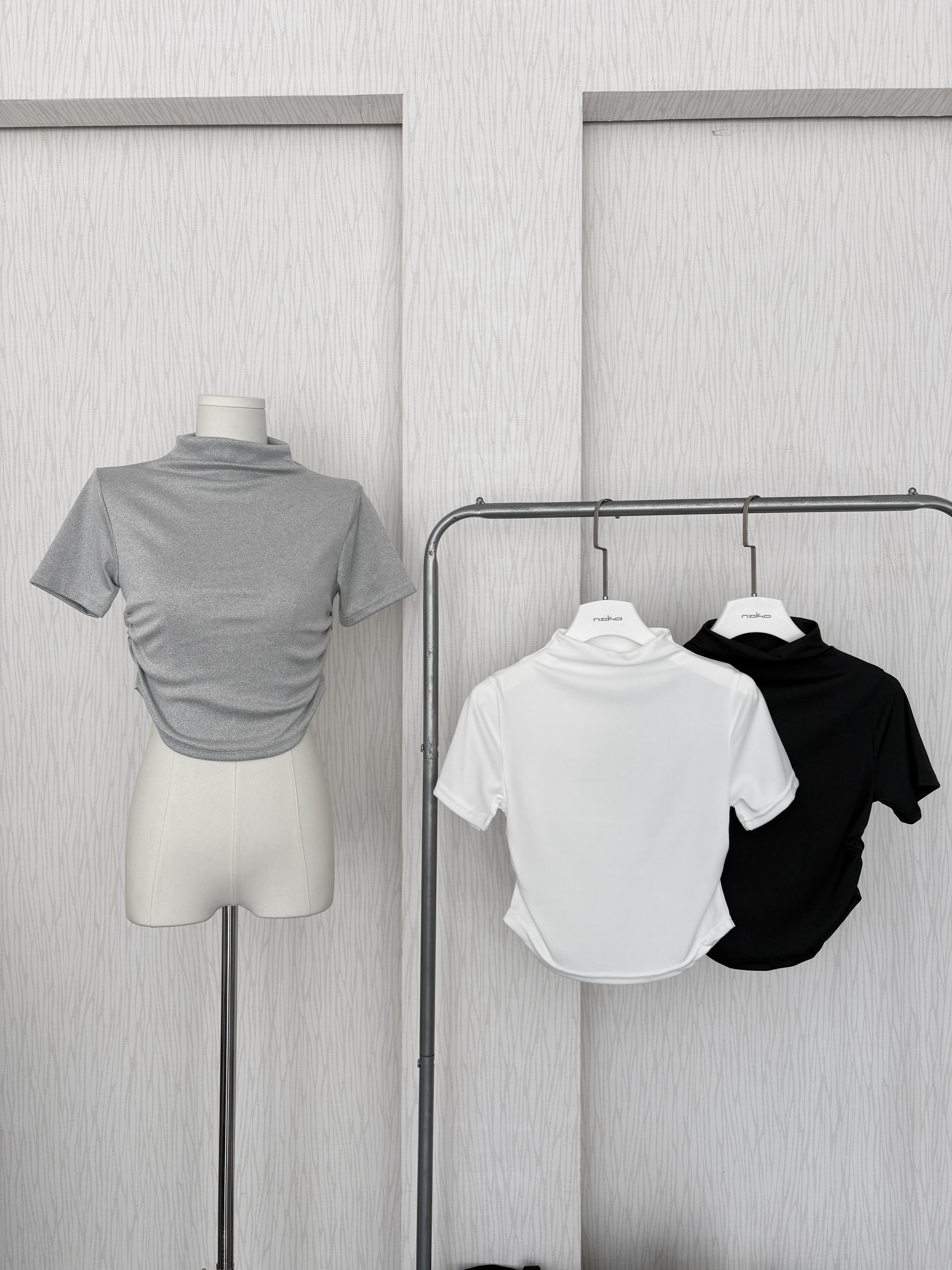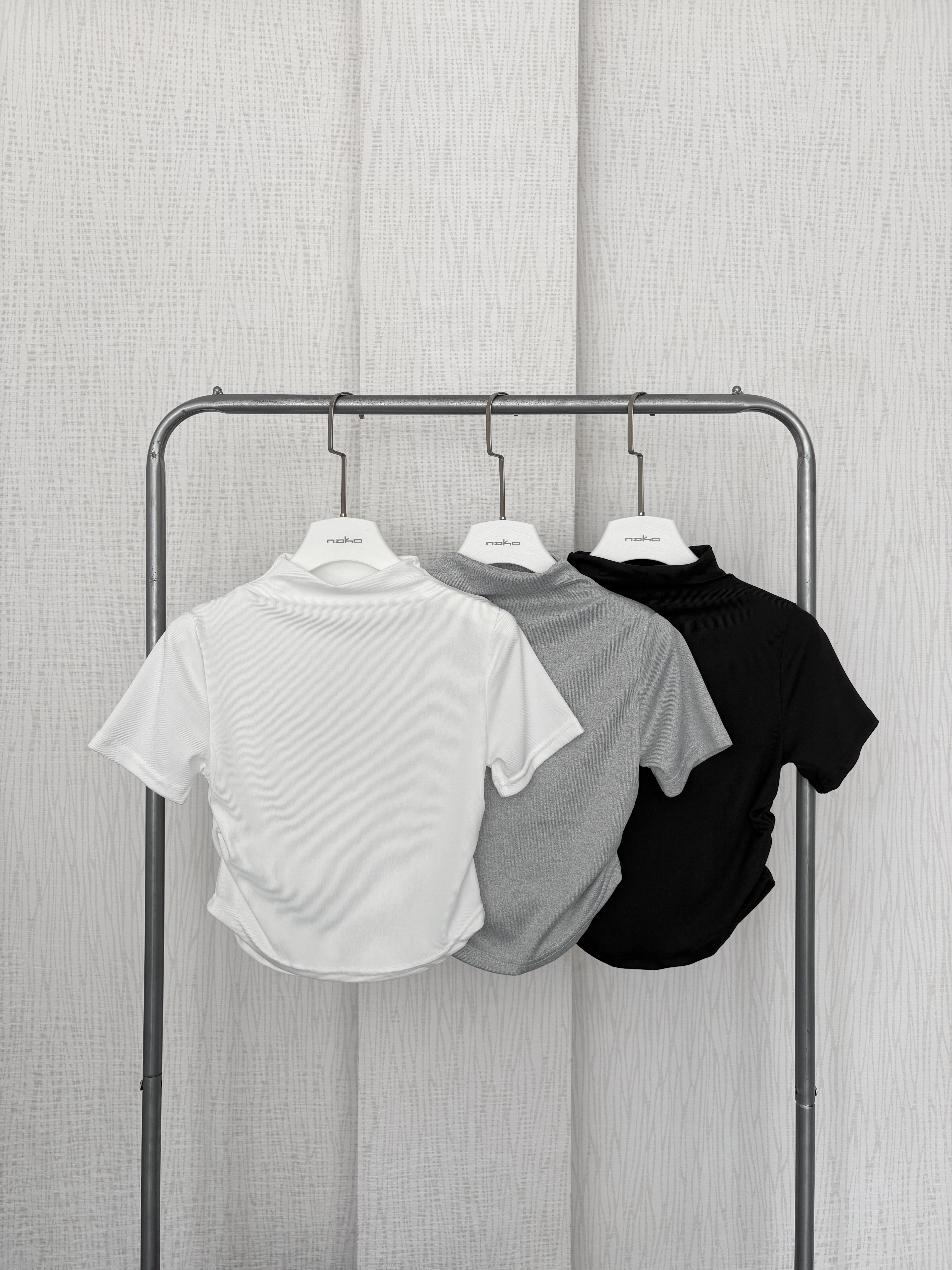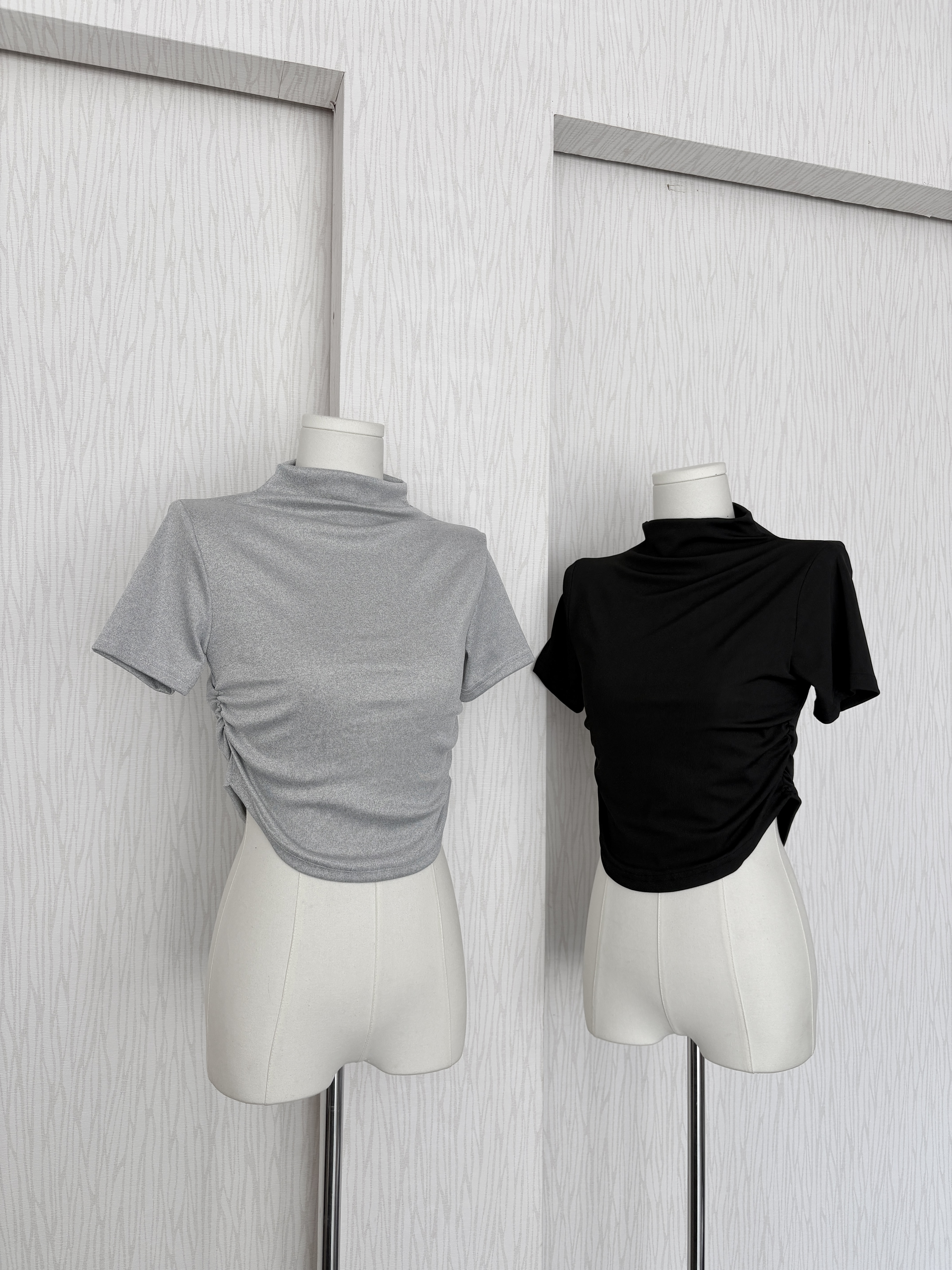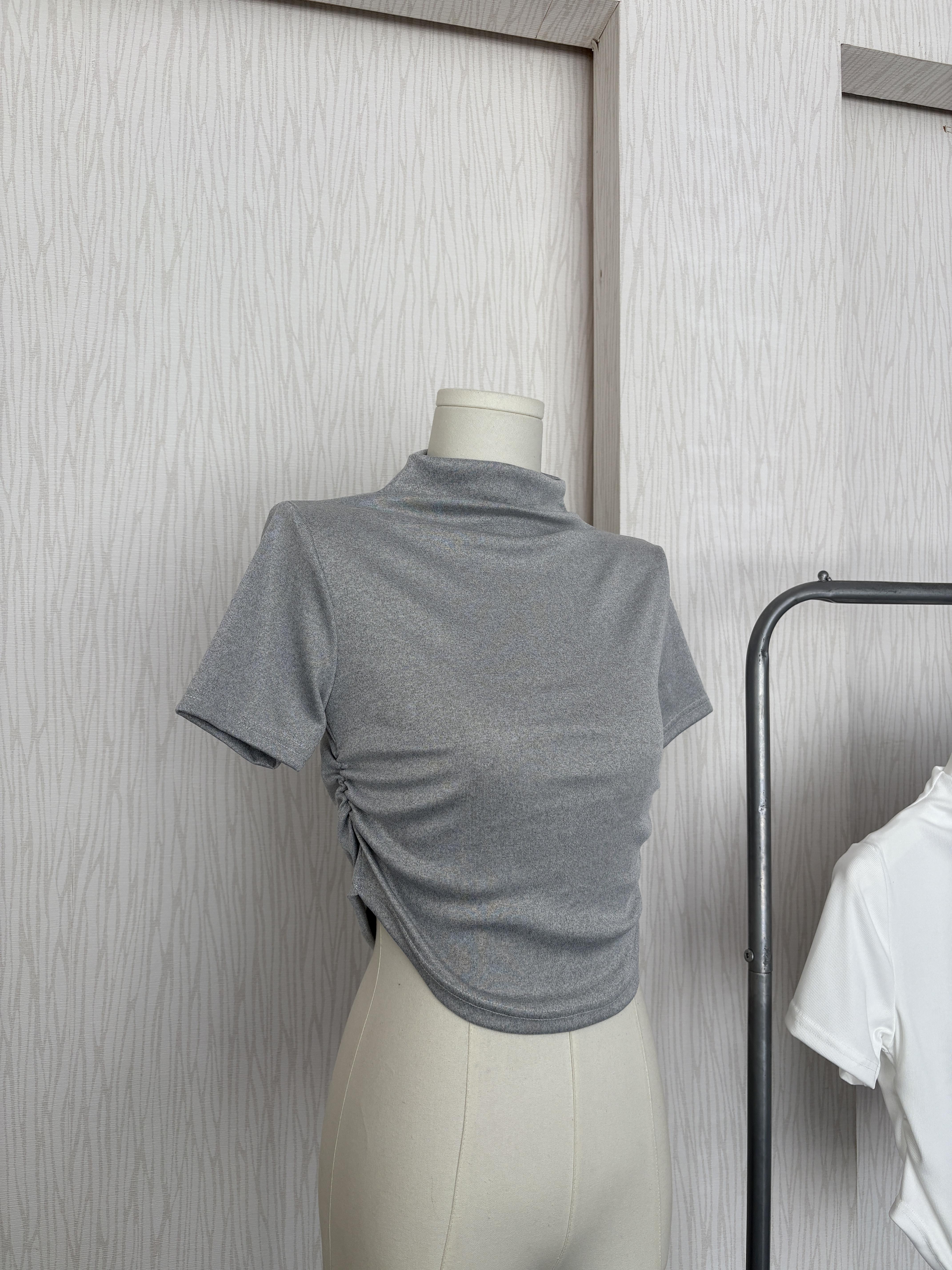 訂製款⊹素面高圓領貼身軟Q短版短袖上衣
