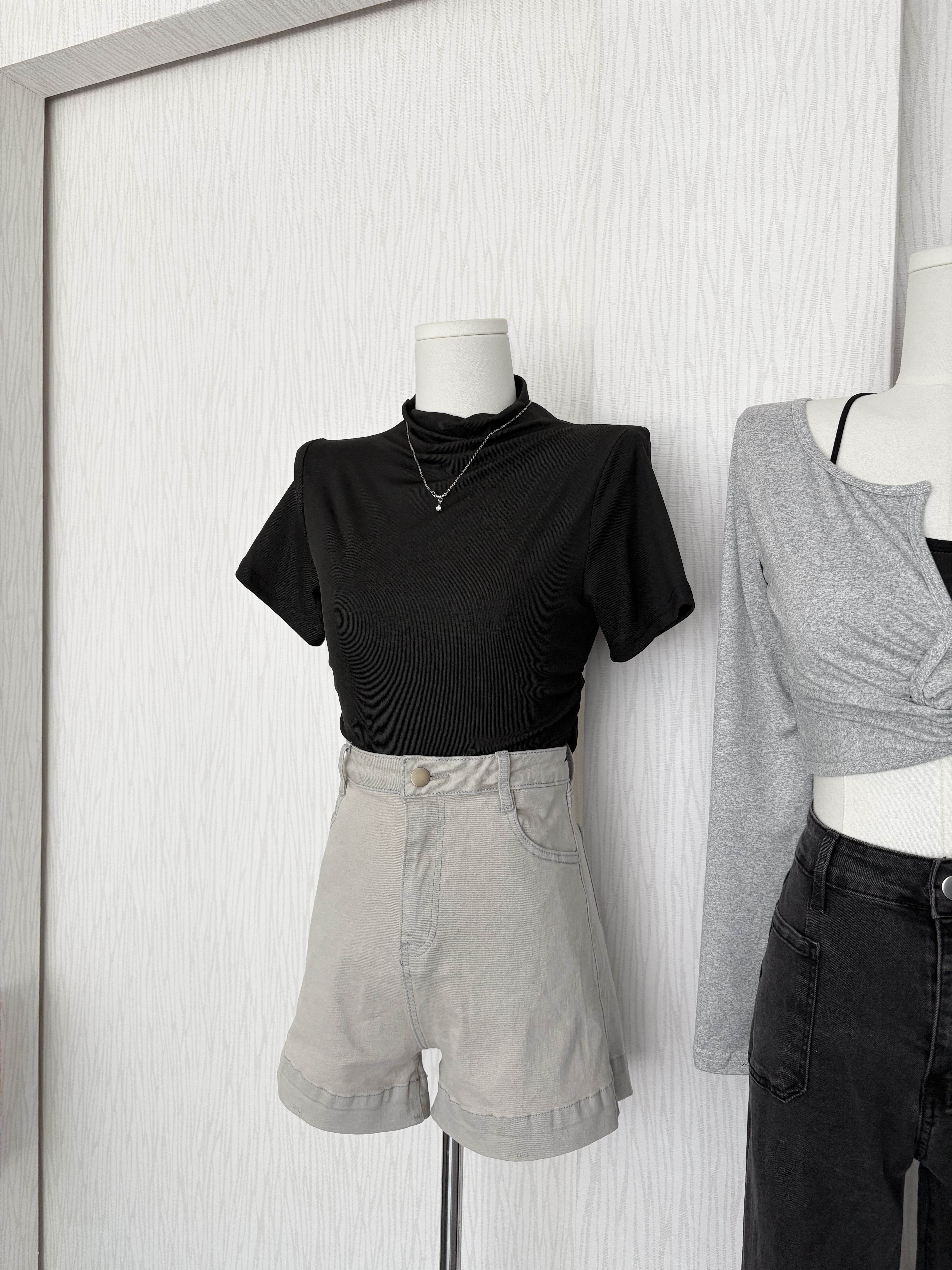 三扣黑邊超短版冰山灰彈性涼感上衣