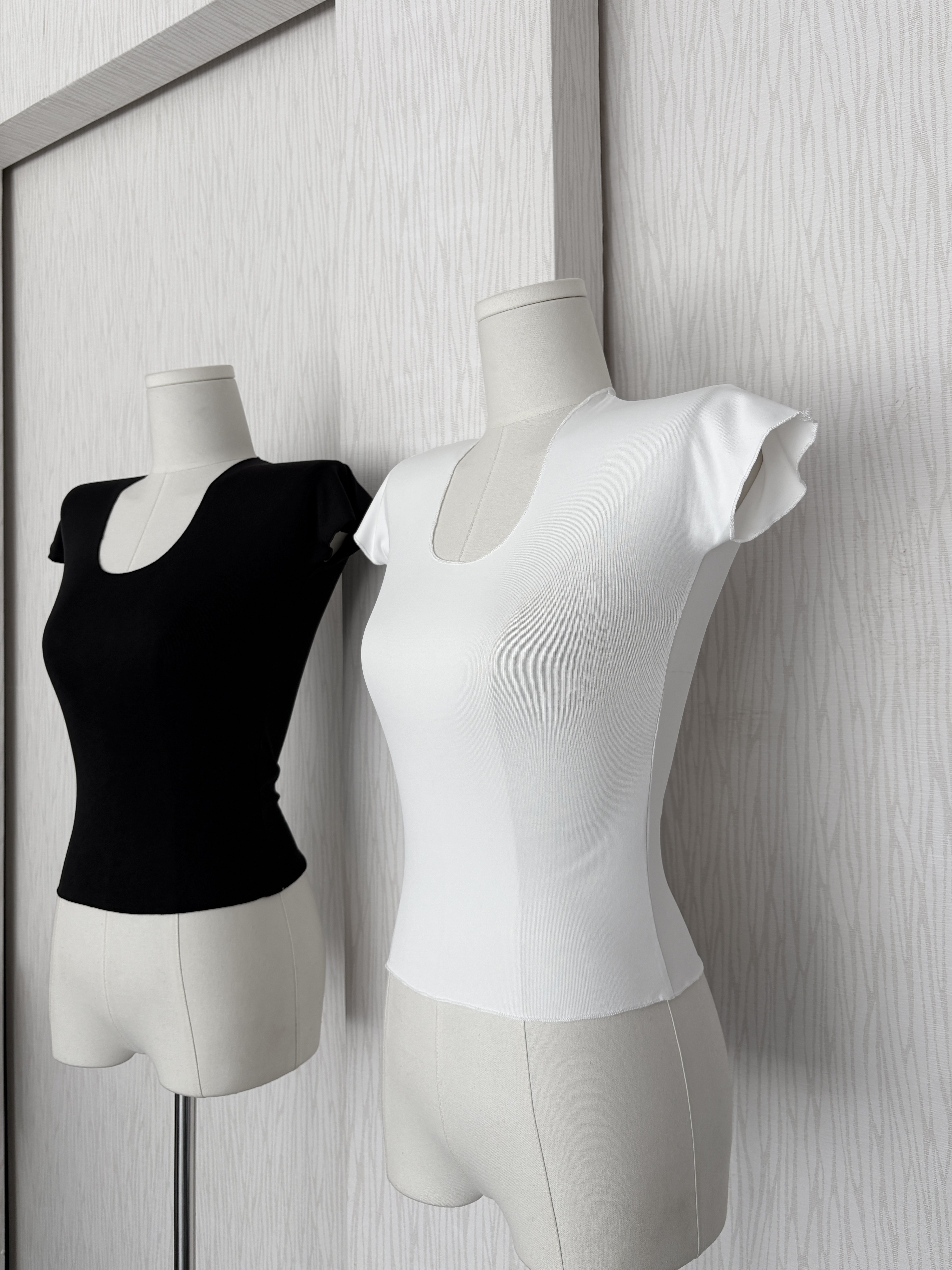 訂製款⊹素面高圓領貼身軟Q短版短袖上衣