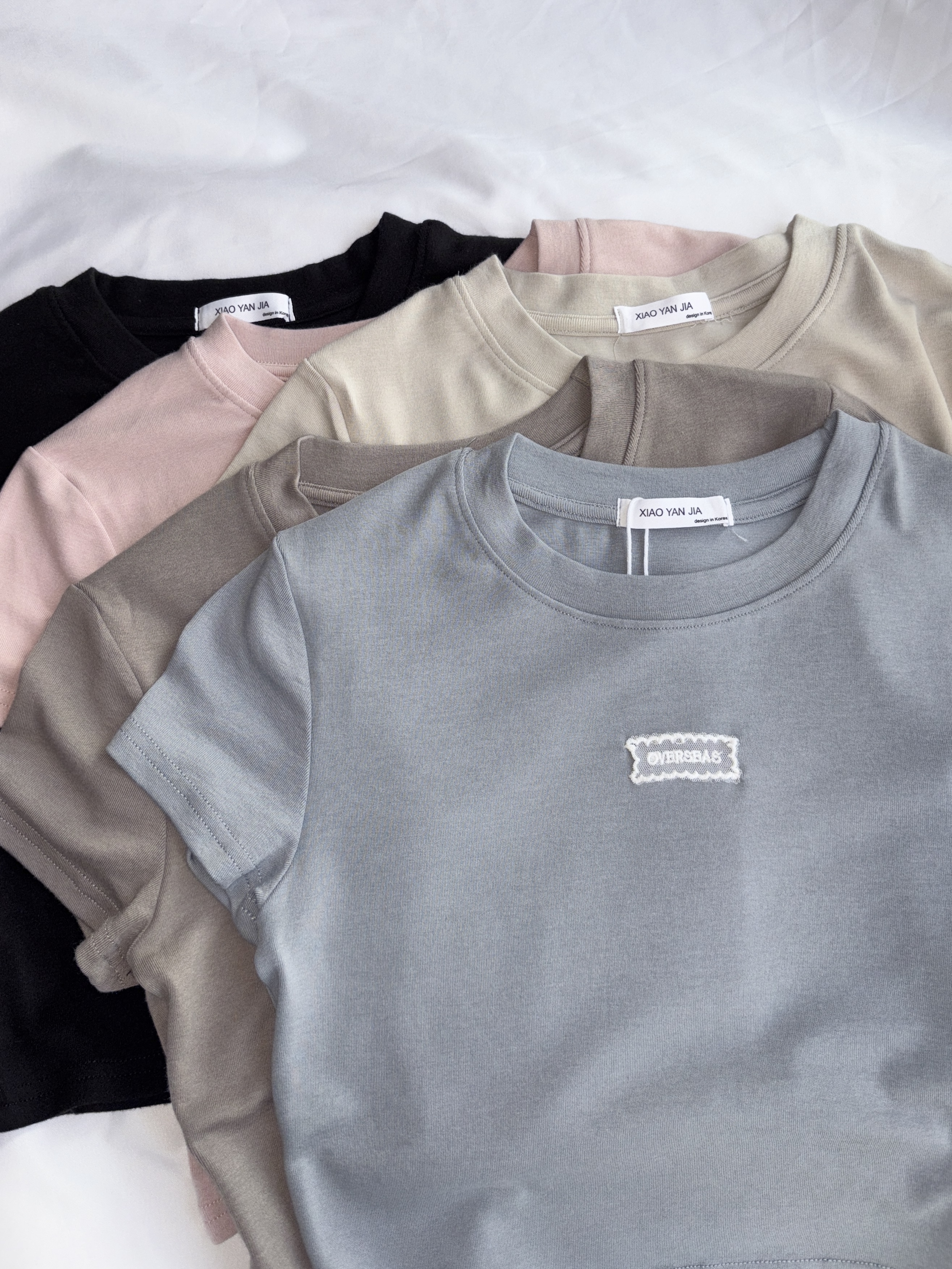 【限量現貨】圓領排扣短袖上衣(附白色三扣蕾絲背心)
