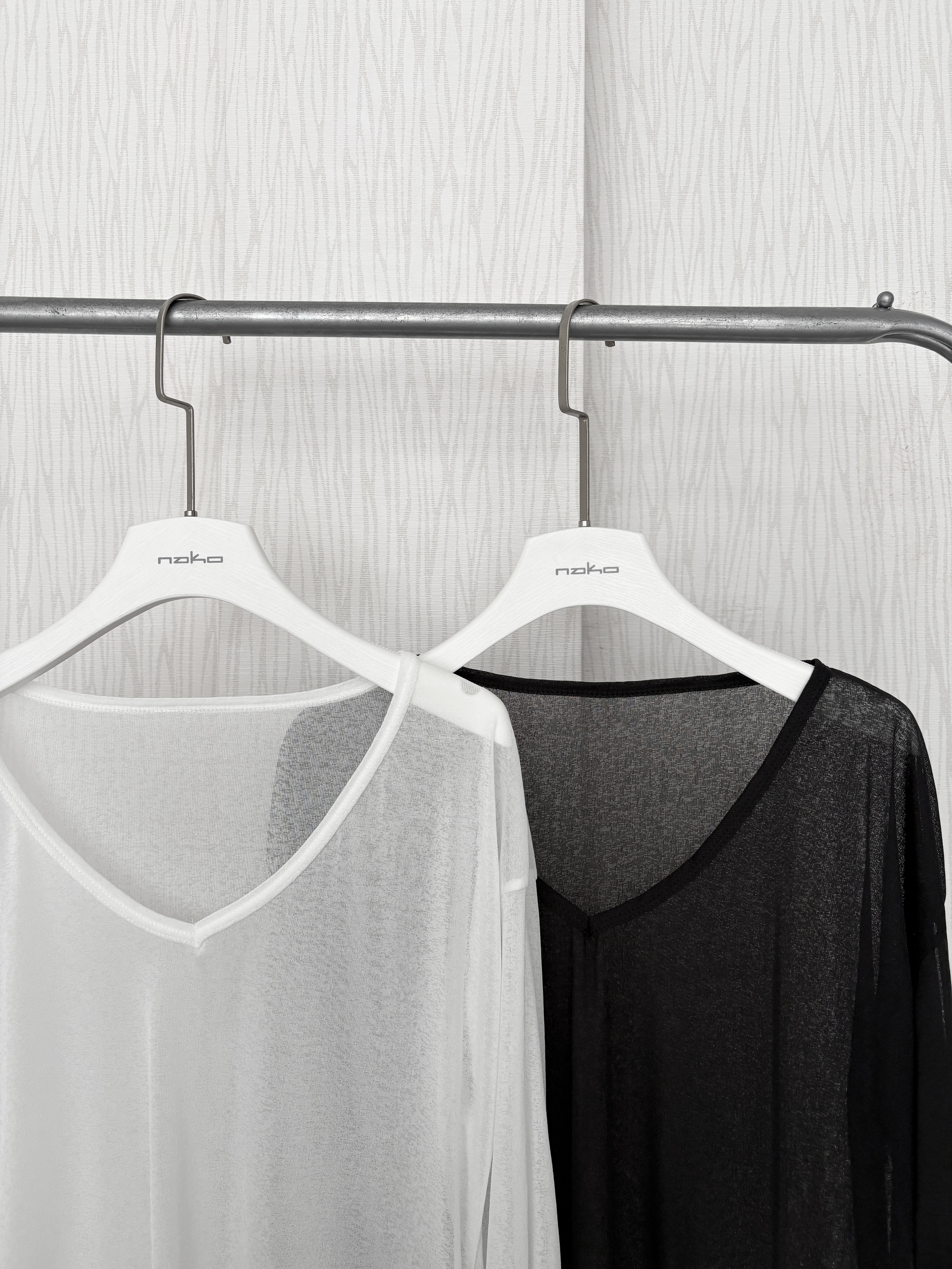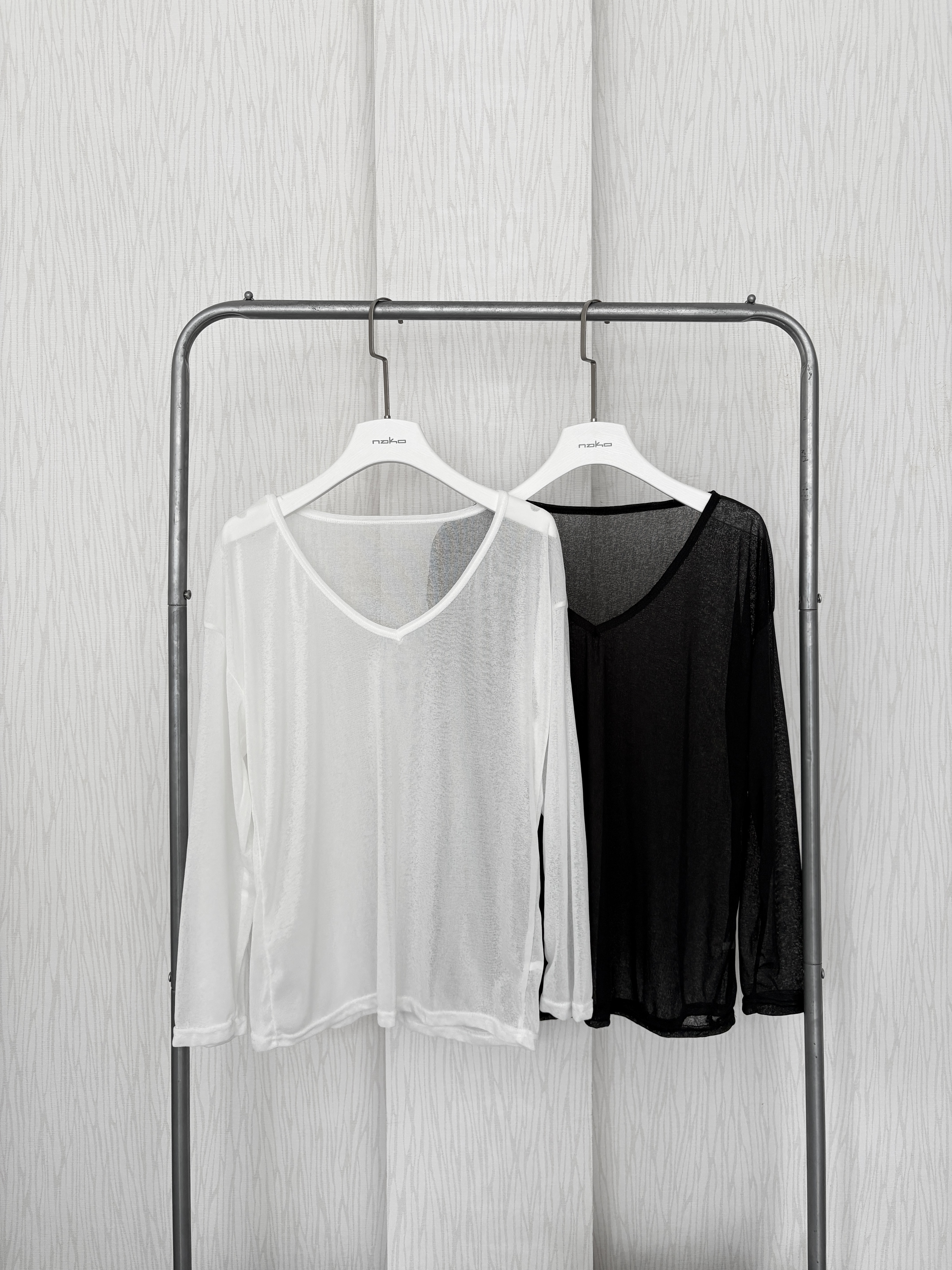 度假必備.ᐟ大V領透膚素面罩衫